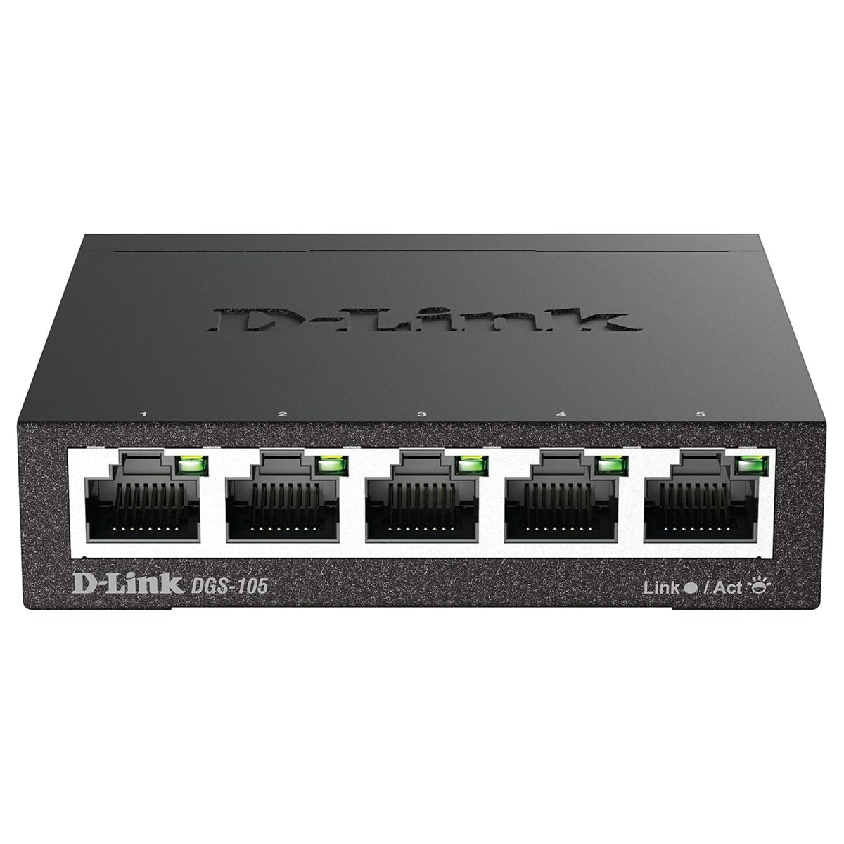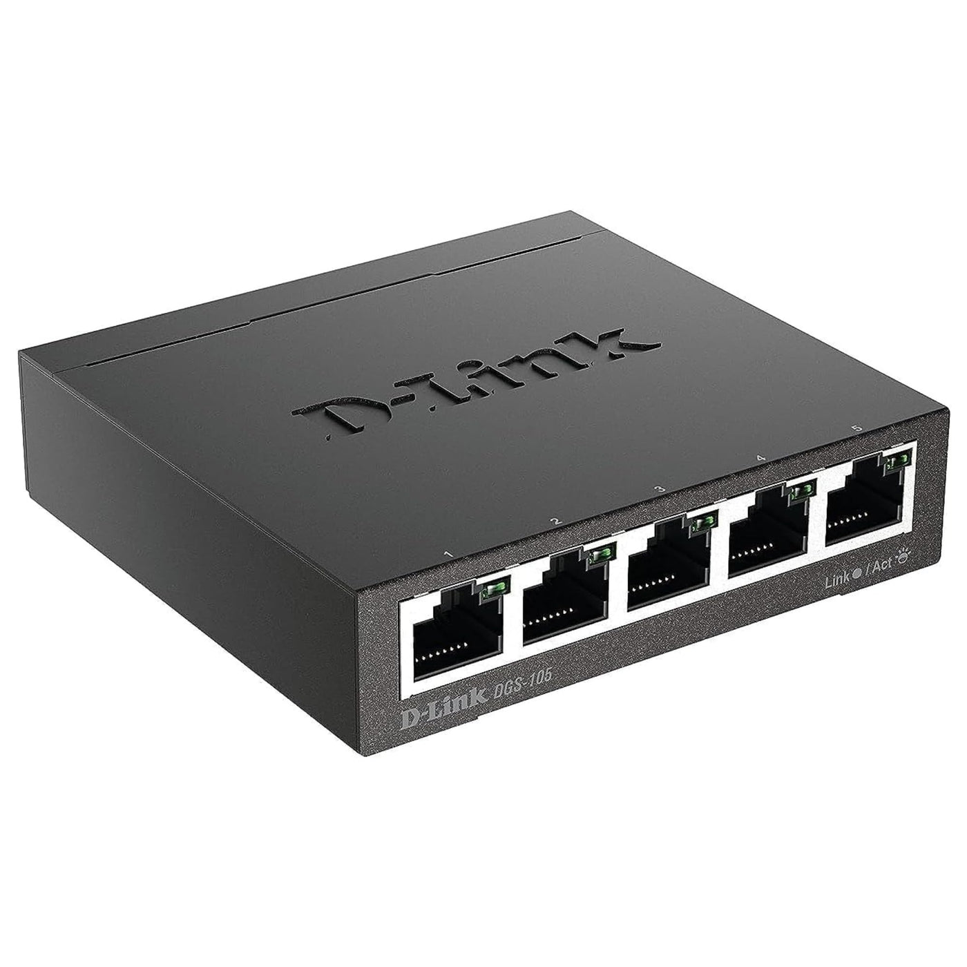 D Link Ethernet Switch, 5 Port Gigabit Unmanaged Metal Desktop Plug And Play Compact (Dgs 105),Black