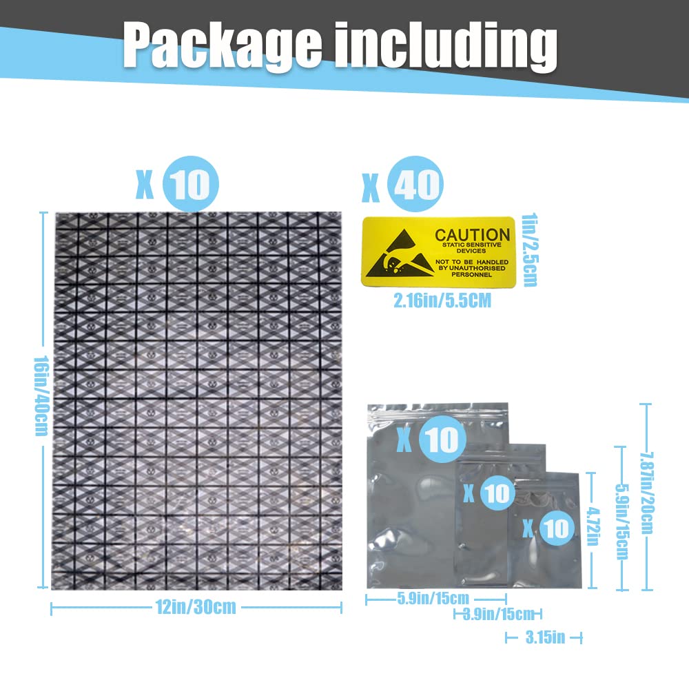 Descriptions: Item Detail: 10Pcs Open Top Esd Shielding Anti-Static Bags And 10Pcs Anti-Static Labels 10 Pcs 5.9X7.87 Inches(15X20Cm)For 3.5'' Hard Drive,Memory And Other Bigger Size Electronic Parts. 10 Pcs 3.94X5.9 Inchs(10X15Cm) For 2.5'' Hard Dirve, As Well As Mobile Hard Disk, Rams And So On. 10 Pcs 3.15X4.72 Inchs(8X12Cm) For 1.8'' Hard Drive, Or For Small Oxidizable Electronic Parts, Such As Ic, Led, Or Headphone?Data Cable Waterproof And Moisture Proof. Features: A.Effectively Prevent Static Electricity, Protect Your Electronic Products. B.Translucent High Quality Polyethylene Terephthalate (Pet) Material, Non-Toxic And Free From Extraneous Odor C.Can Be Used To Store All Electronic Such As Motherboard ,Video Card,Lcd Screen,Sensitive Electronic Components,Hard Disks, Rams, Processor, I/O Memory Card, Earphone, Button Battery Etc D.Large Size And Reusable,Cheap And Very Effective,Is Your Best Choice.