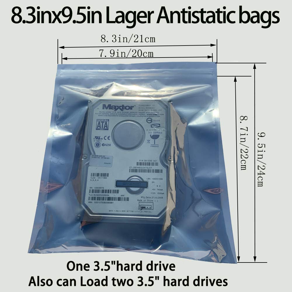 Descriptions: Item Include: Nbsp;1.25 Pcs 8.26X9.45(21X24Cm) Antistatic Bags With 25 Labels. Features: A.Effectively Prevent Static Electricity, Protect Your Electronic Products. B.Translucent High Quality Polyethylene Terephthalate (Pet) Material, Non-Toxic And Free From Extraneous Odor C.Can Be Used To Store All Electronic Such As 3.5'' Hard Drive,Video Card,Led Light Bars,Sensitive Electronic Components,I/O Cards,Etc. D.Large Size And Reusable,Cheap And Very Effective,Is Your Best Choice. Warm Tips: A.Please Note That This Product Can'T Pack Motherboard,Video Card,Lcd Screen Etc. B.Please Make Sure You Choose The Right Size. Any Question Or Asking For Assistance, Please Feel Free To Contack Us, We Will Be At Your Service.