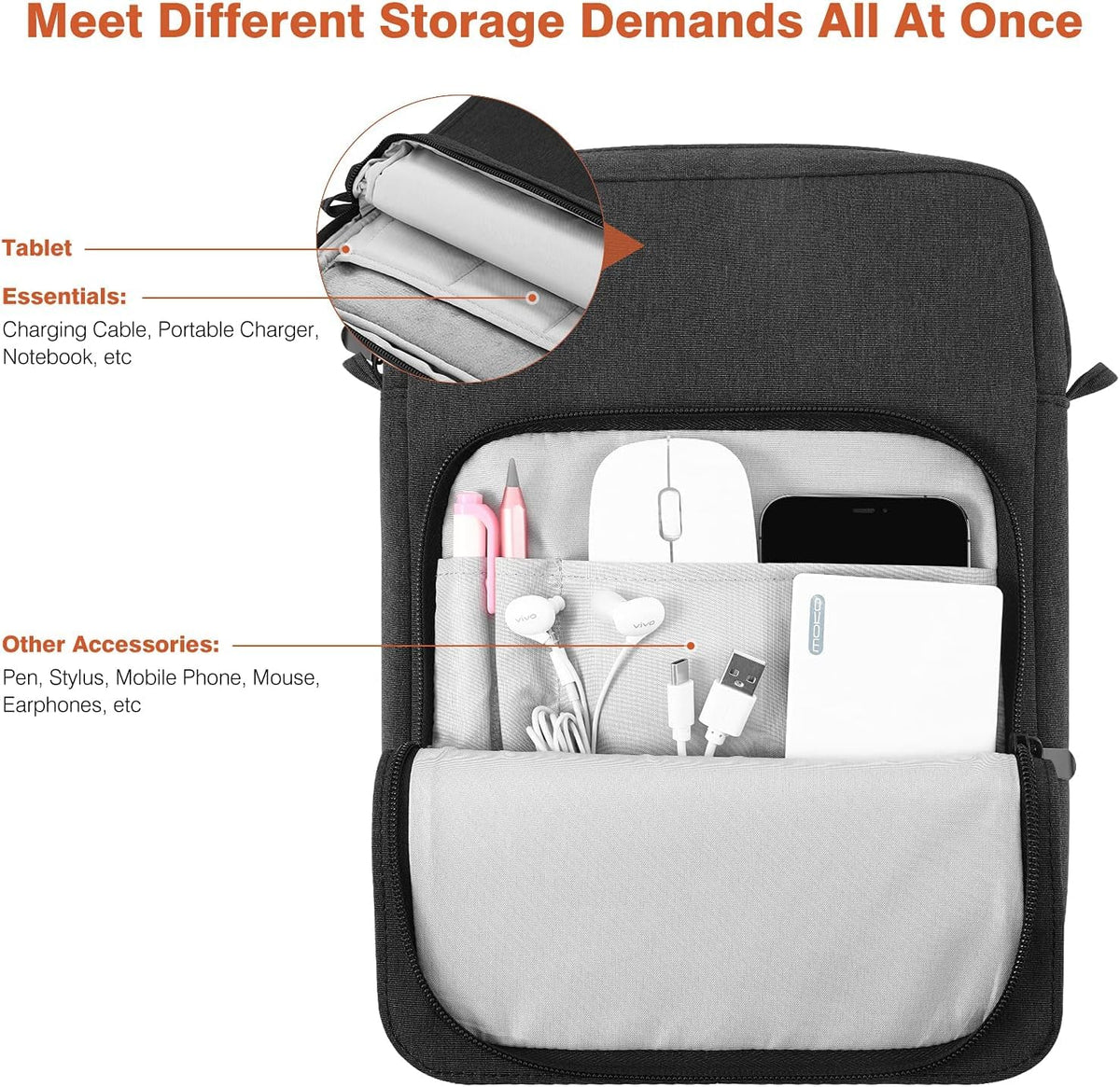 Dadanism 9-11 Inch Tablet Sleeve Bag Carrying Case With Shoulder Strap For Ipad (A16) 11, Ipad 10Th Gen 10.9 Air 5/4, I-Pad Air/Pro 11, I-Pad 9/8/7Th 10.2, Galaxy Tab A9+ Plus 11,Black & Grey