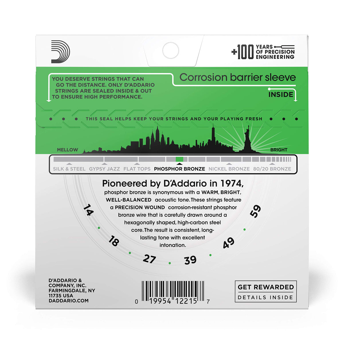 Daddario Acoustic Guitar Strings, Phosphor Bronze, Ej18, Heavy Gauge 14-59, 6-String Set, Pack Of 1