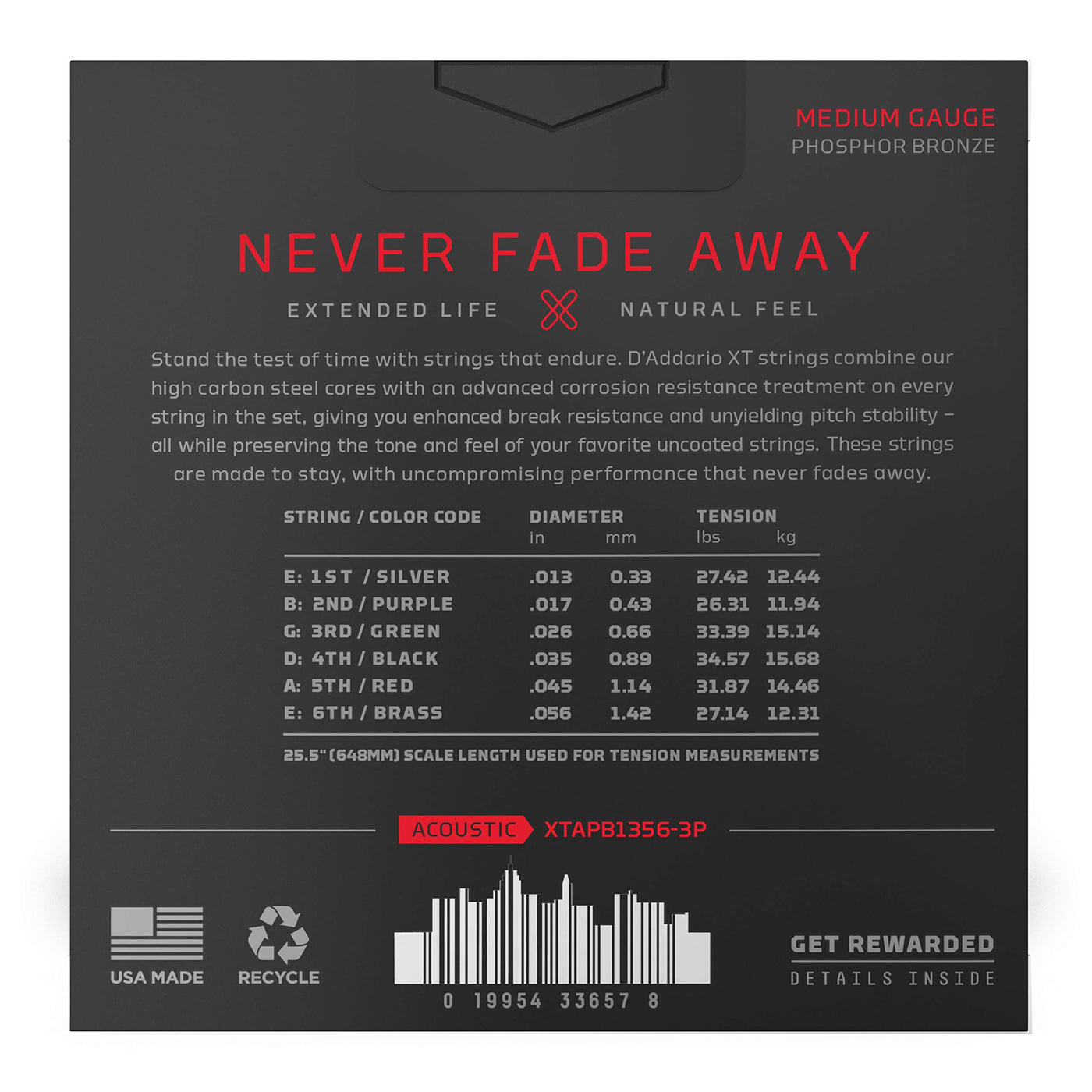 Since Daddario Introduced Phosphor Bronze Acoustic Guitar Strings In 1974, Theyve Been Synonymous With Warm, Well-Balanced Tone. Xt Phosphor Bronze Offers That And More, Boasting Enhanced Break Resistance, Better Pitch Stability, And Longer Life Than Our Standard Phosphor Bronze Strings. The Xt Coating Delivers Advanced Corrosion Resistance, While Still Retaining The Warm Tone And Natural Feel Of The Uncoated String. Beneath The Coating, These Xt Acoustic Strings Are Constructed With A Ny Steel Core, Phosphor Bronze Wrap Wire, And Fusion Twist Technology, Affording Tonal Versatility With Added Resilience, Excellent For A Wide Range Of Acoustic Styles. This 3-Pack Contains Three Sets Of 13-56 Medium Gauge Strings Which Provide Maximum Volume And Projection, With More Tension And Resistance.