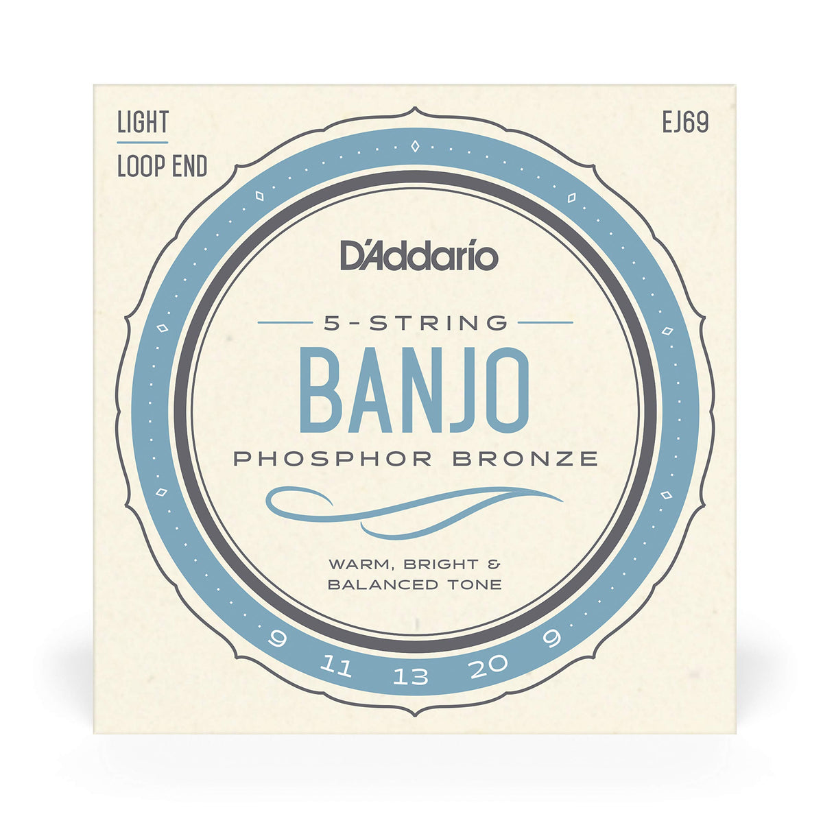 D'Addario Banjo Strings, Phosphor Bronze, Ej69, Light Gauge 9 20, 5 String Set, Pack Of 1