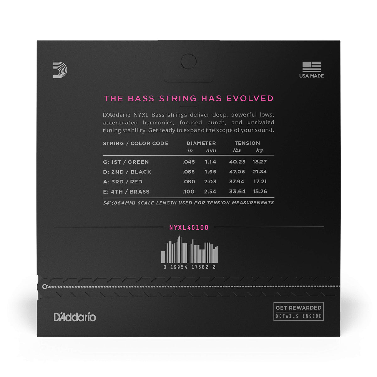 Daddario Bass Guitar Strings Nyxl Bass Strings Nyxl45100 Unrivaled Strength, Tuning Stability, Enhanced Response For 4 S