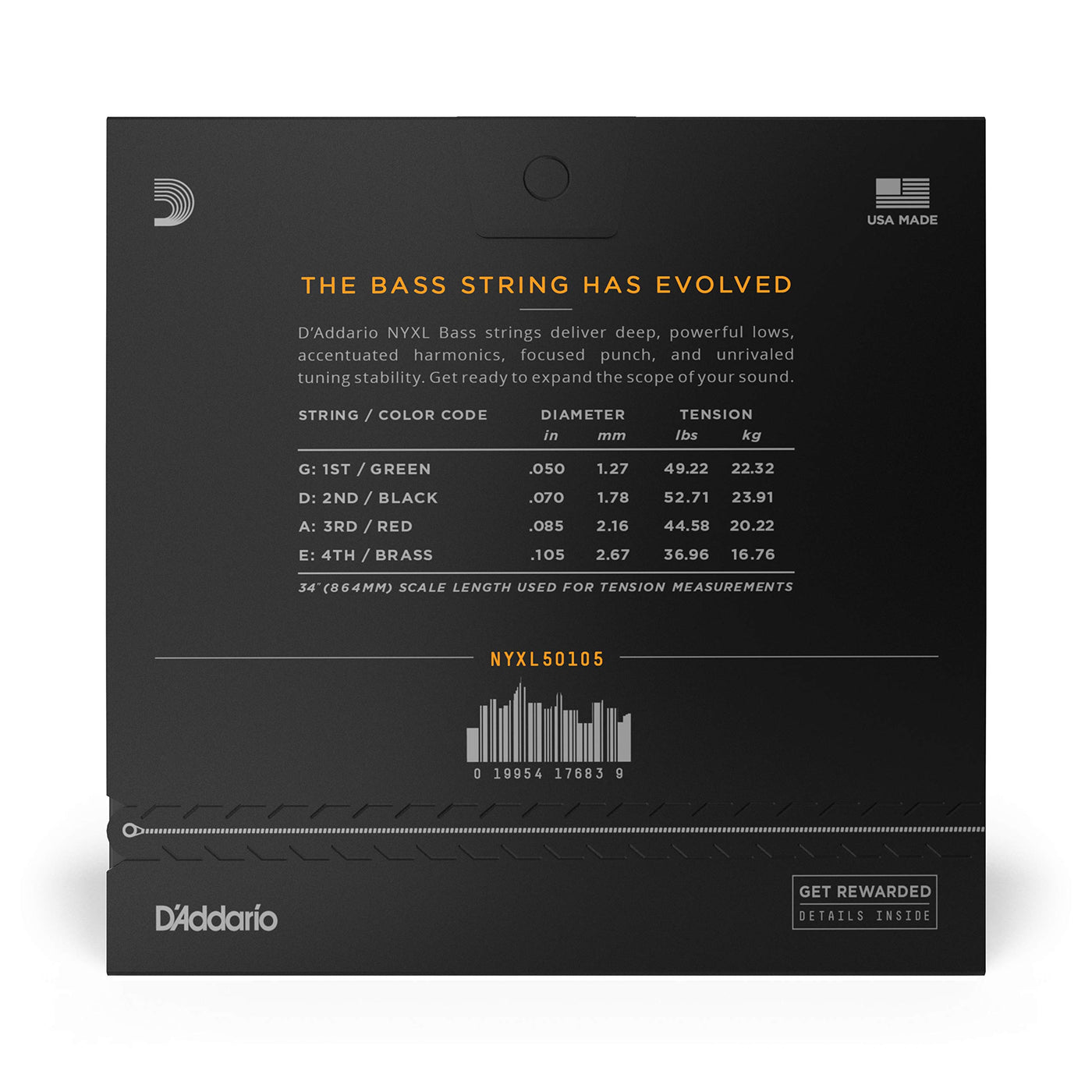 Nyxl Bass Guitar Strings Thump Harder, Bend Farther, And Sound Thicker Than Any Bass String Youve Played Before. As Our Premium Uncoated Bass String, Nyxl Bass Strings Provide Higher Break Strength, Enhanced Tuning Stability, And Accentuated Harmonics Where It Counts. Using A Ny Steel Core, Fusion Twist Technology, And Premium Nickel-Plated Steel Wrap Wire, With A Reengineered Core-To-Wrap Ratio, Nyxl Bass Guitar Strings Deliver Extra Versatility, Familiar Feel, And A Boosted Tone Thatll Expand The Scope Of Your Low-End. This 50-105 Medium Gauge Set Has A Higher Tension, Affording Increased Low-End Response And Output.