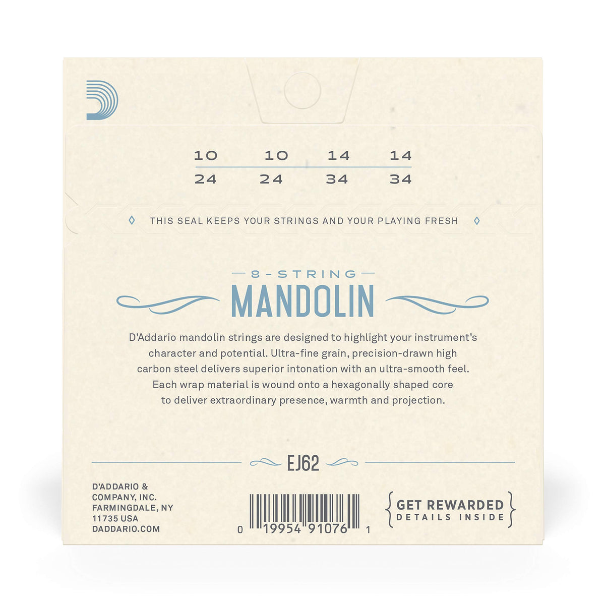 D'Addario Ej62 80/20 Bronze Mandolin Strings, Light, 10 34