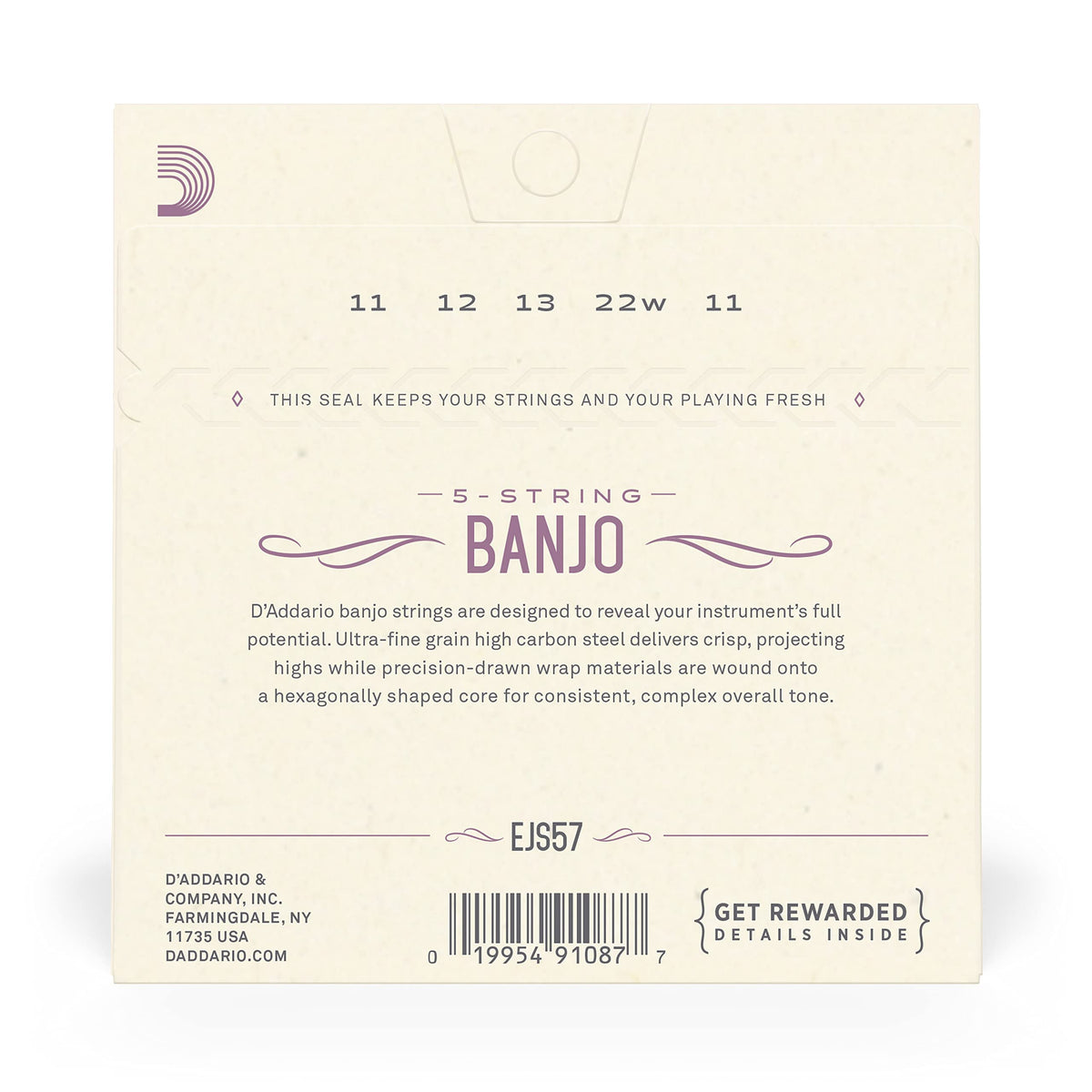 D'Addario Ejs57 Stainless Steel 5 String Banjo Strings, Custom Medium, 11 22