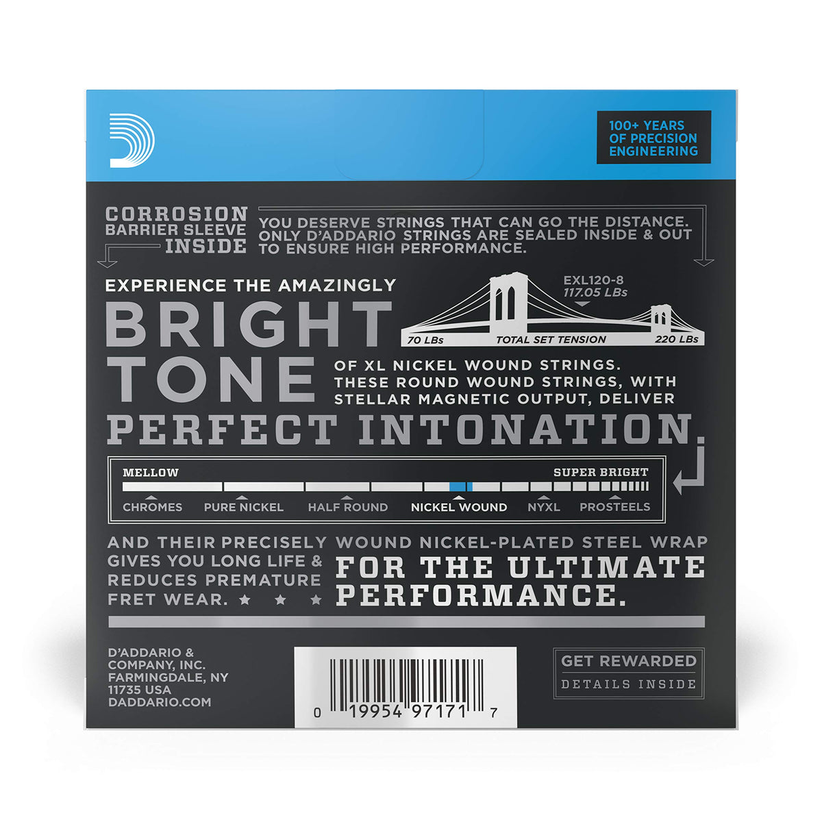 Daddario Electric Guitar Strings, Xl Nickel, Exl120-8, Super Light Gauge 09-65, 8-String Set, Pack Of 1