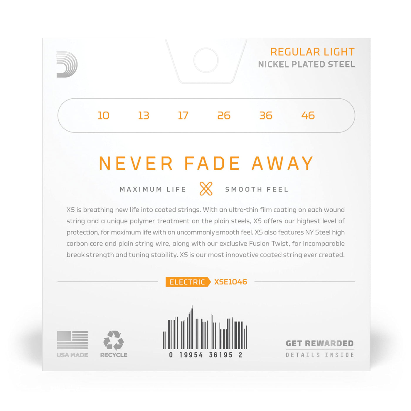 Daddario Electric Guitar Strings, Xs Nickel Coated, Xse1046, Regular Light Gauge 10-46, 6-String Set, Pack Of 1