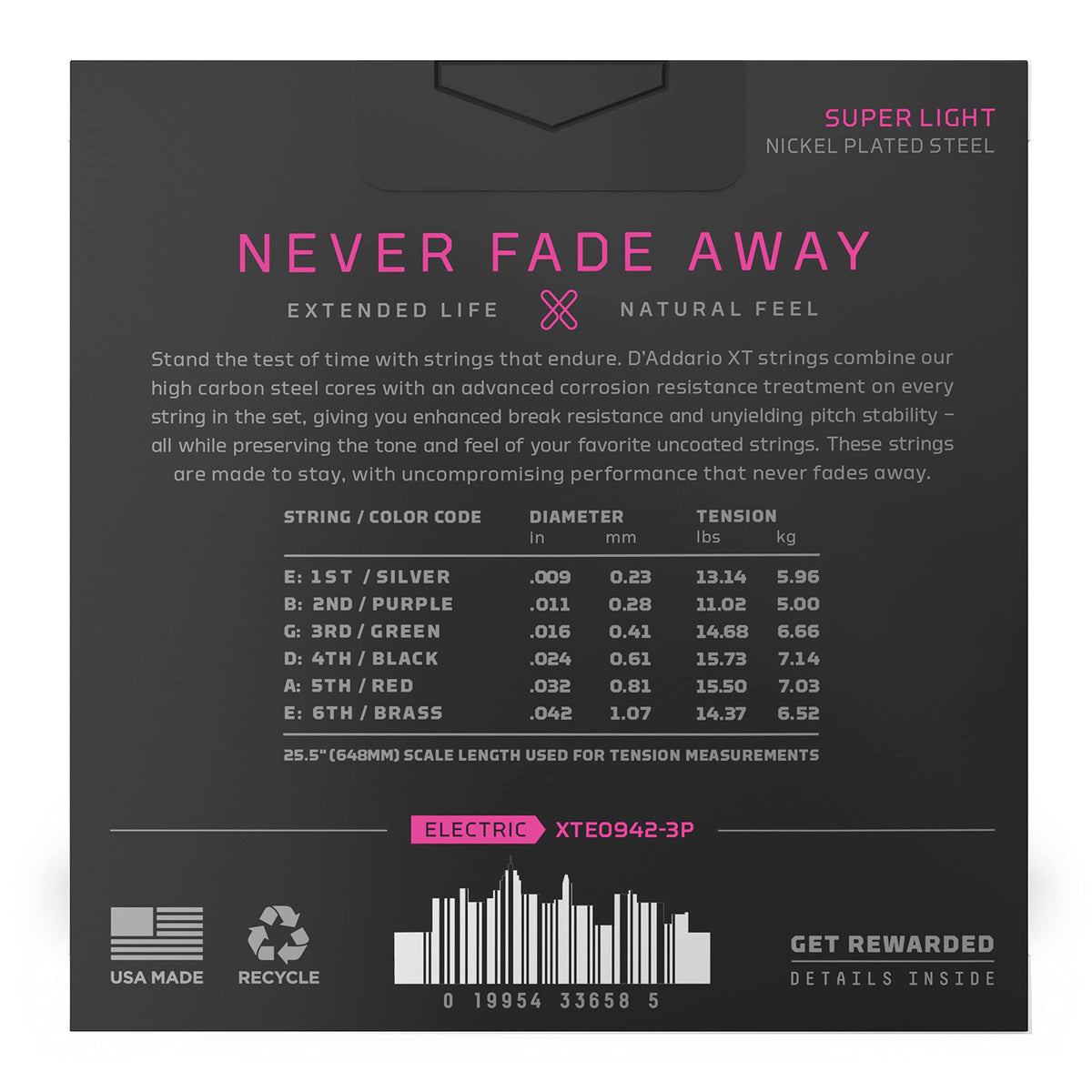 Daddario Electric Guitar Strings, Xt Nickel Coated, Xte0942-3P, Super Light Gauge 09-42, 6-String Set, Pack Of 3