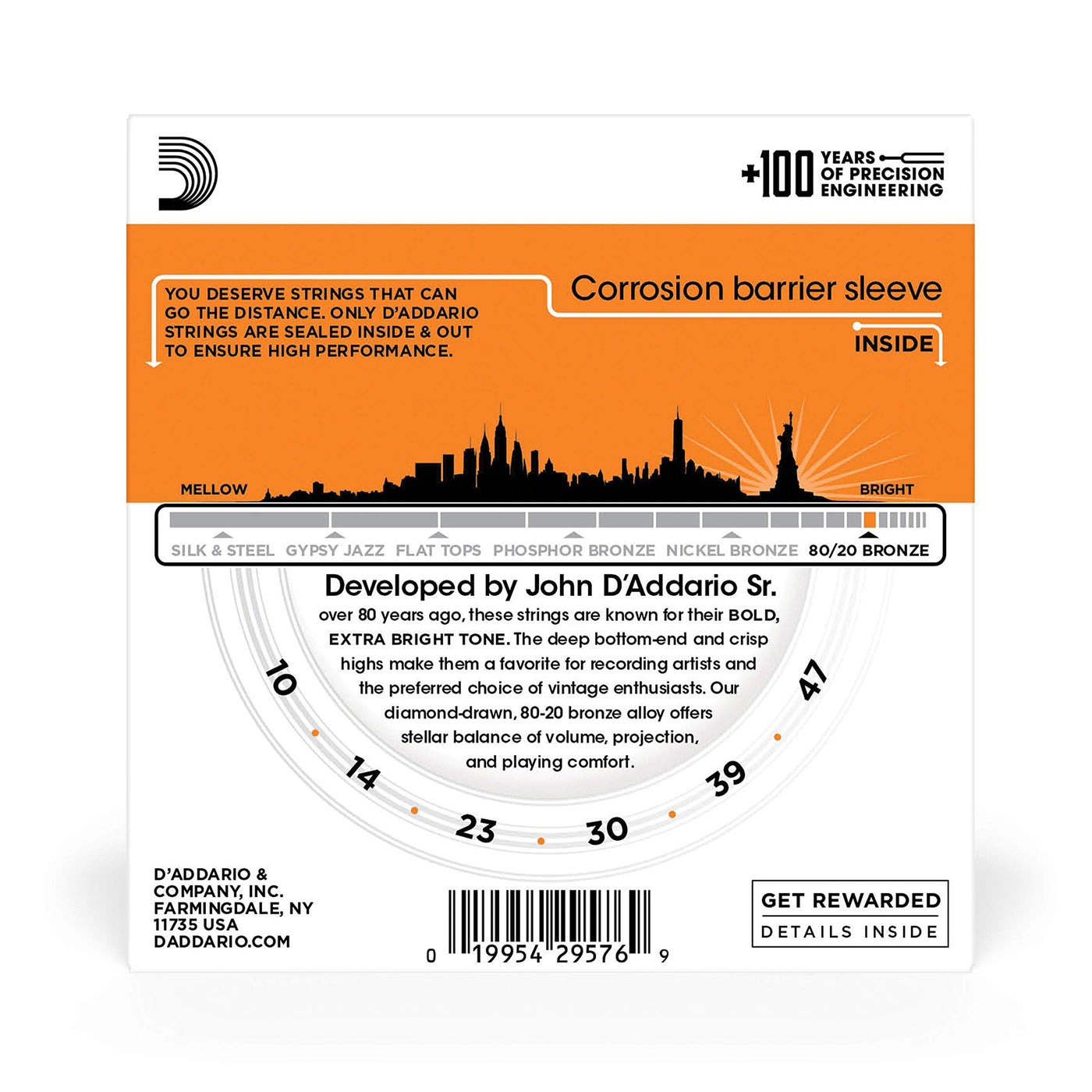 8020 Bronze Are Our Brightest Acoustic Strings, Made To Give Your Guitar An Unparalleled Shine These Bold Sounding Strings Were Developed By John Daddario Sr And Guitar Maker John Dangelico In The 1930S, And Have Been Beloved For Their Sparkling, Trebly Tone Ever Since Made With A High Carbon Steel Core And 8020 Bronze Wrap Wire, 8020 Acoustic Strings Offer Remarkable Depth, Along With Rich, Bright Harmonics, And Powerful Projection These 10-47 Extra Light Gauge Strings Are Easy To Play And Easy To Bend