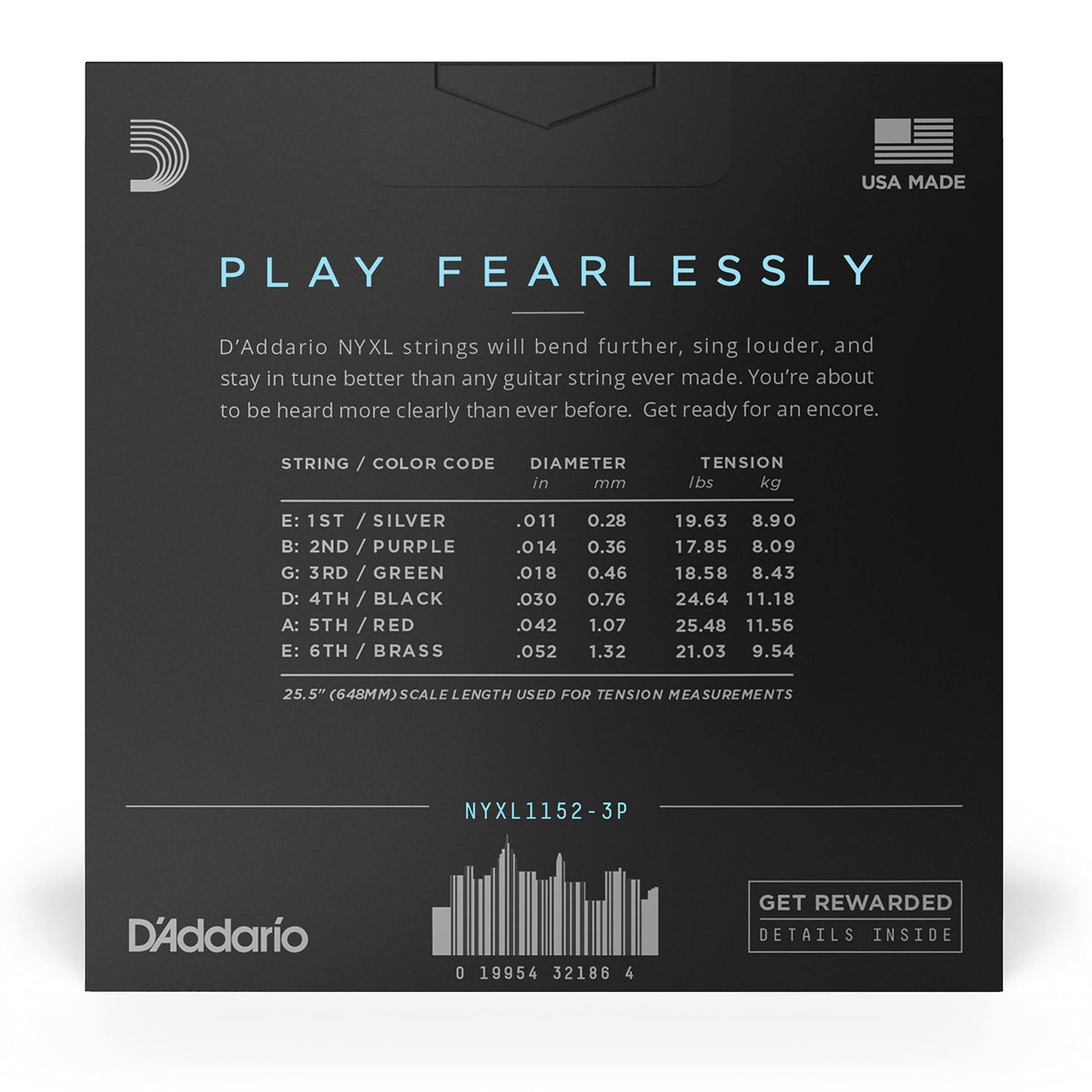 D'Addario Guitar Strings Nyxl Electric Guitar Strings Nyxl1152 3P Unrivaled Strength, Tuning Stability, Enhanced Mid Range