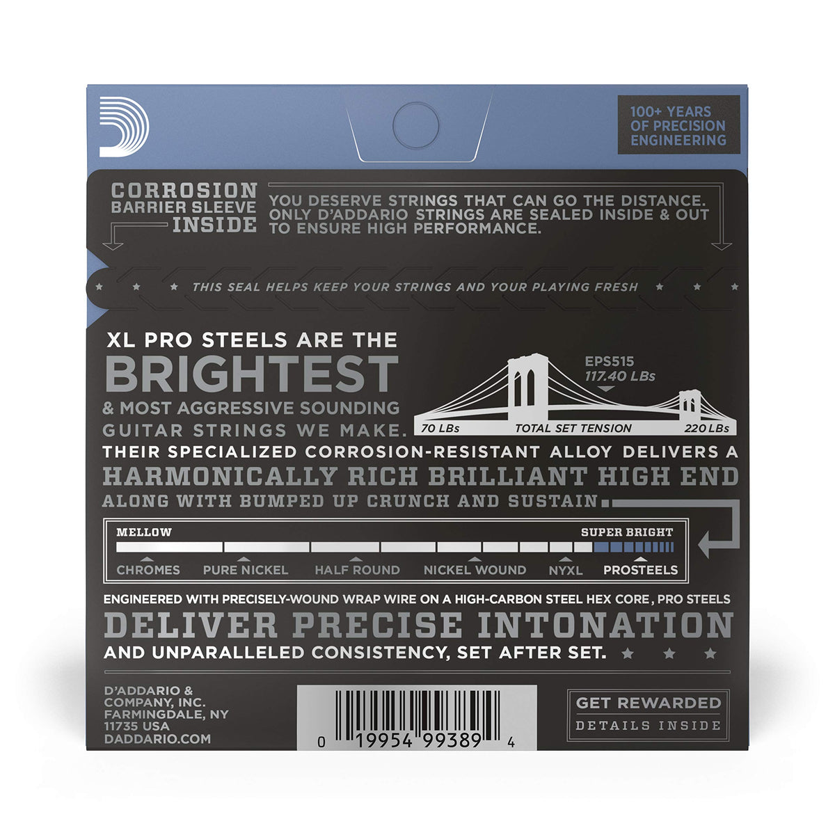 Xl Prosteels Are Daddarios Brightest Electric Guitar Strings. The Unique, Highly Magnetic Alloy In Prosteels Offers A Super Bright, Crunchy Tone, And Increased Sustain. Made With A High Carbon Steel Core And Stainless Steel Wrap Wire, Prosteels Produce Enhanced Interaction With Magnetic Pickups, Creating An Extraordinarily Bright Tone That Will Cut Through Any Mix. These 11-50 Medium Gauge Strings Provide Increased Volume, With Slightly More Tension And Resistance.