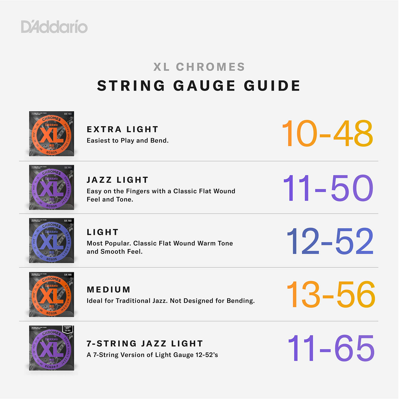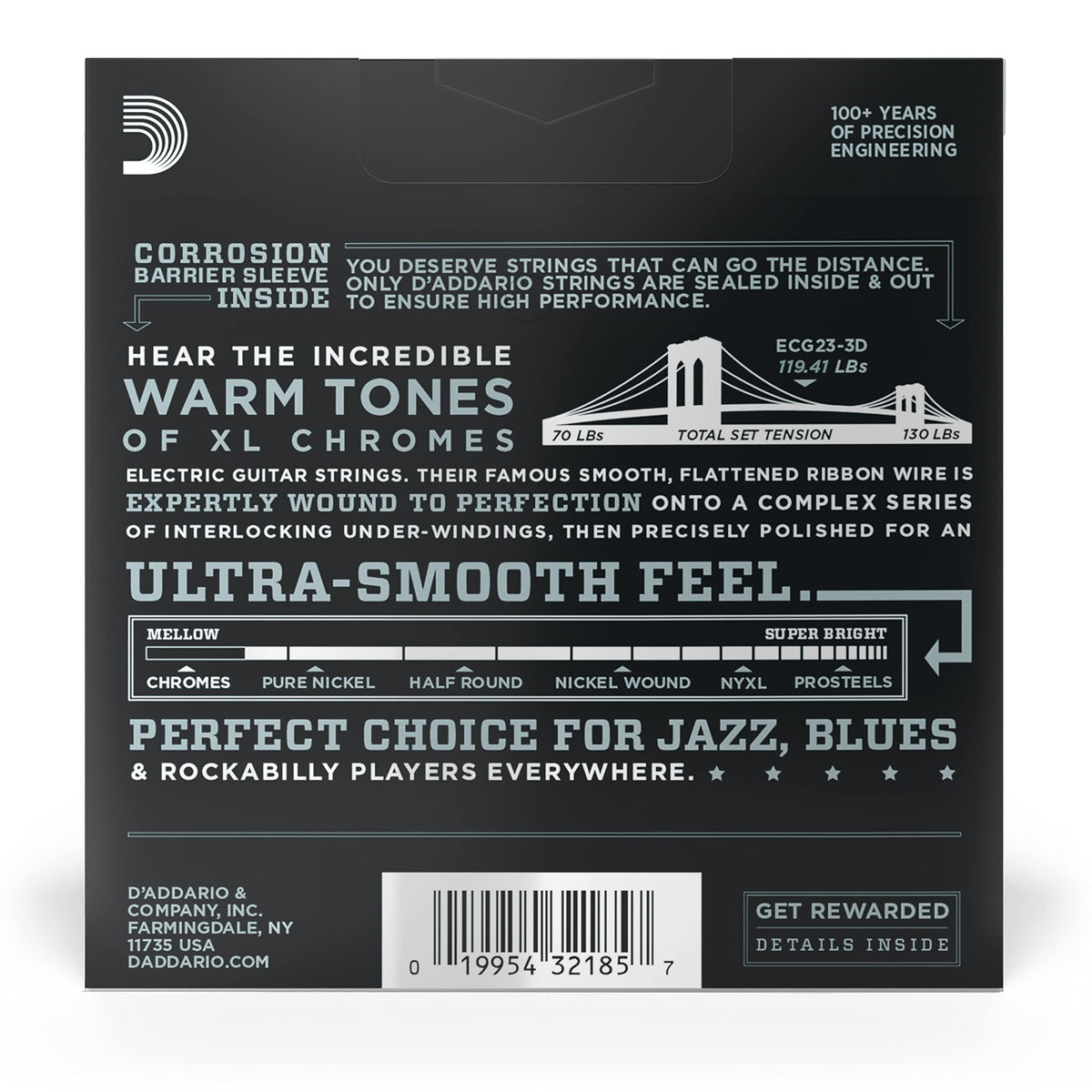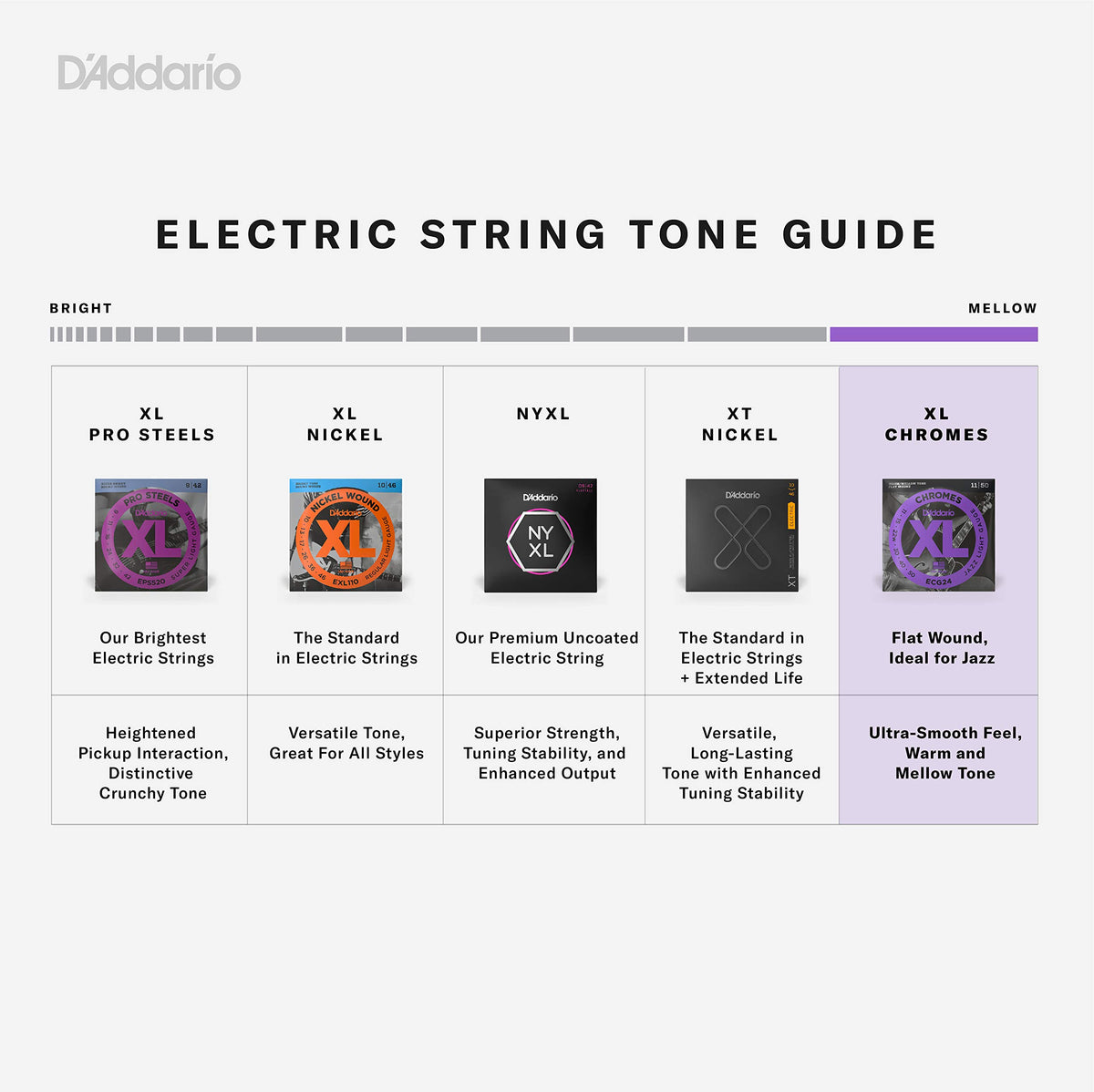D'Addario Guitar Strings Xl Chromes Electric Guitar Strings Flat Wound Polished For Ultra Smooth Feel And Warm, Mellow Ton