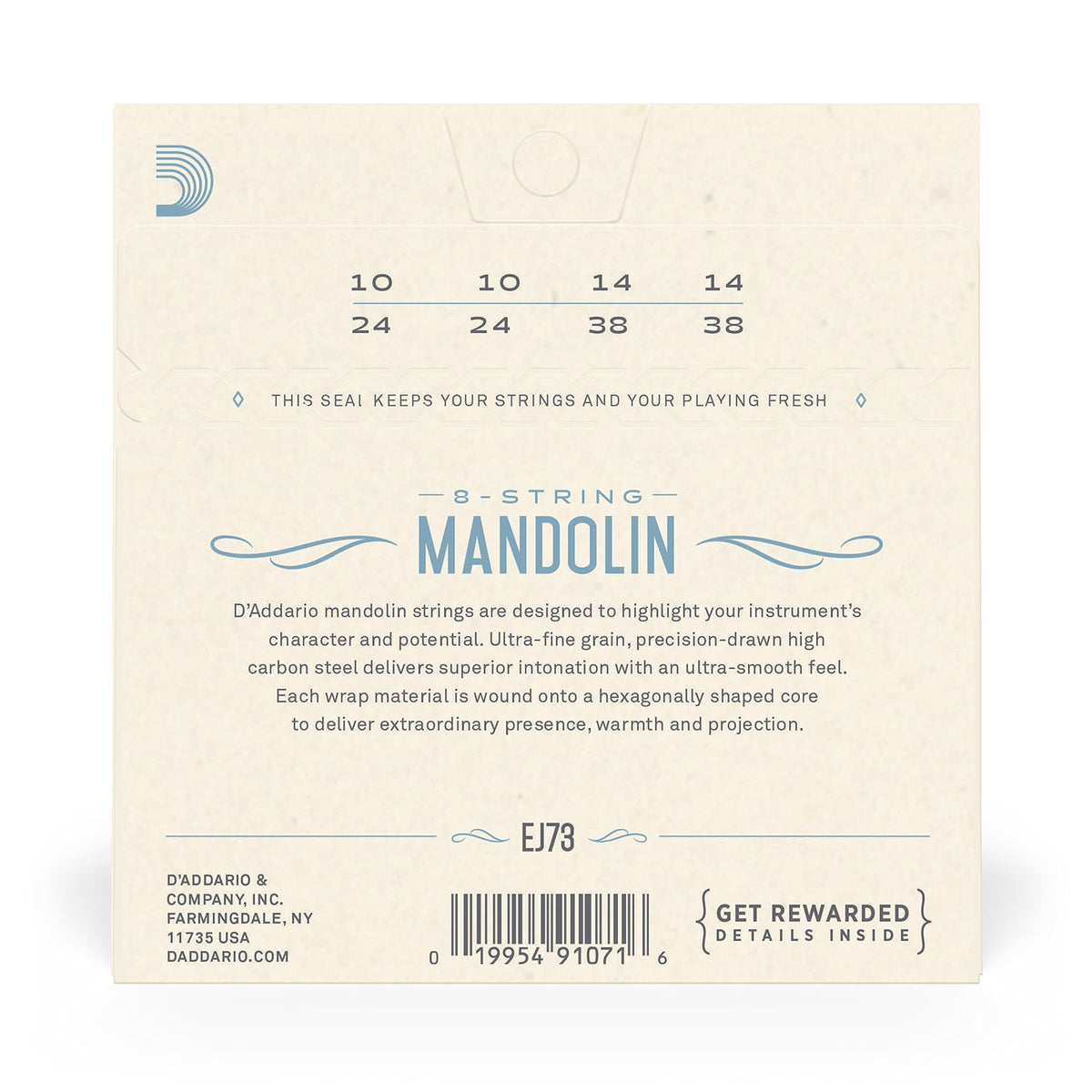 Ej73, D'Addario' S Most Popular Light Gauge Mandolin Set, Delivers Warm And Bright Phosphor Bronze Tone With Just The Right Amount Of Tension For Easy Playability And Projection. Loop End Construction For Universal Fit. D'Addario Mandolin Strings Are Trusted By Legends Like David Gris Man, Ricky Skaggs, Ronnie Mccoury, Doyle Lawson, Rhonda Vincent, Mike Marshall, Adam Steffey, And More, For Their Natural Acoustic Tone And Reliable Performance. They Are Made From The Highest Quality Plain Steel, Stainless Steel, Nickel Plated Steel And Phosphor Bronze And Are Available In A Wide Variety Of Gauges.