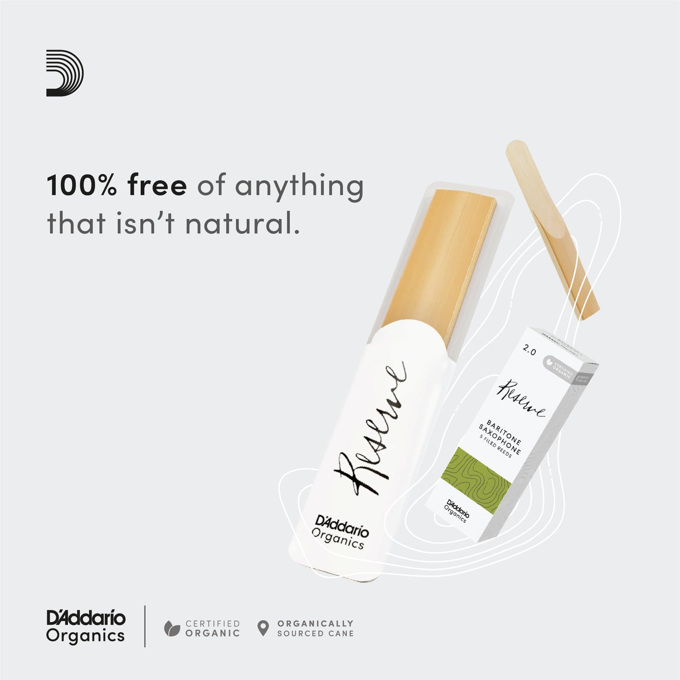 Organic Reserve Reeds Provide You With Dynamic Flexibility And Exceptional, Warm Tone Quality When Playing Due To Their Long Vamp Profile. These Filed Reeds Feature A Traditional Tip To Give You An Ease Of Articulation And Response. Each Reed In The Pack Comes Single-Sealed In A Recyclable Paper Reed Holder And Flow Wrap.
