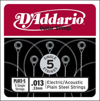 D'Addario Pl013 5 Plain Steel Guitar Single String, 013 5 Pack