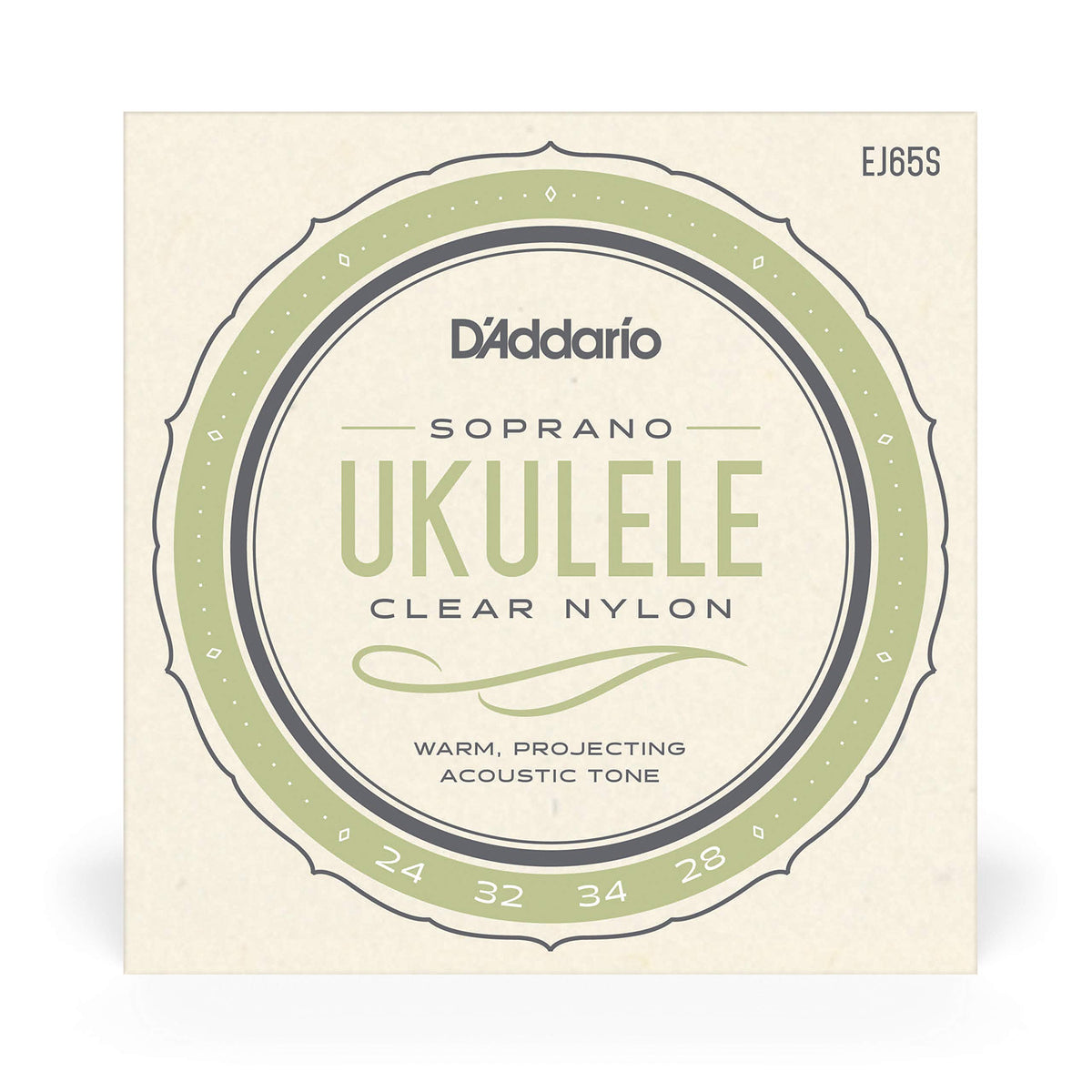 D'Addario Soprano Ukulele Strings, Clear Nylon, Ej65S, 4 String Set, Pack Of 1