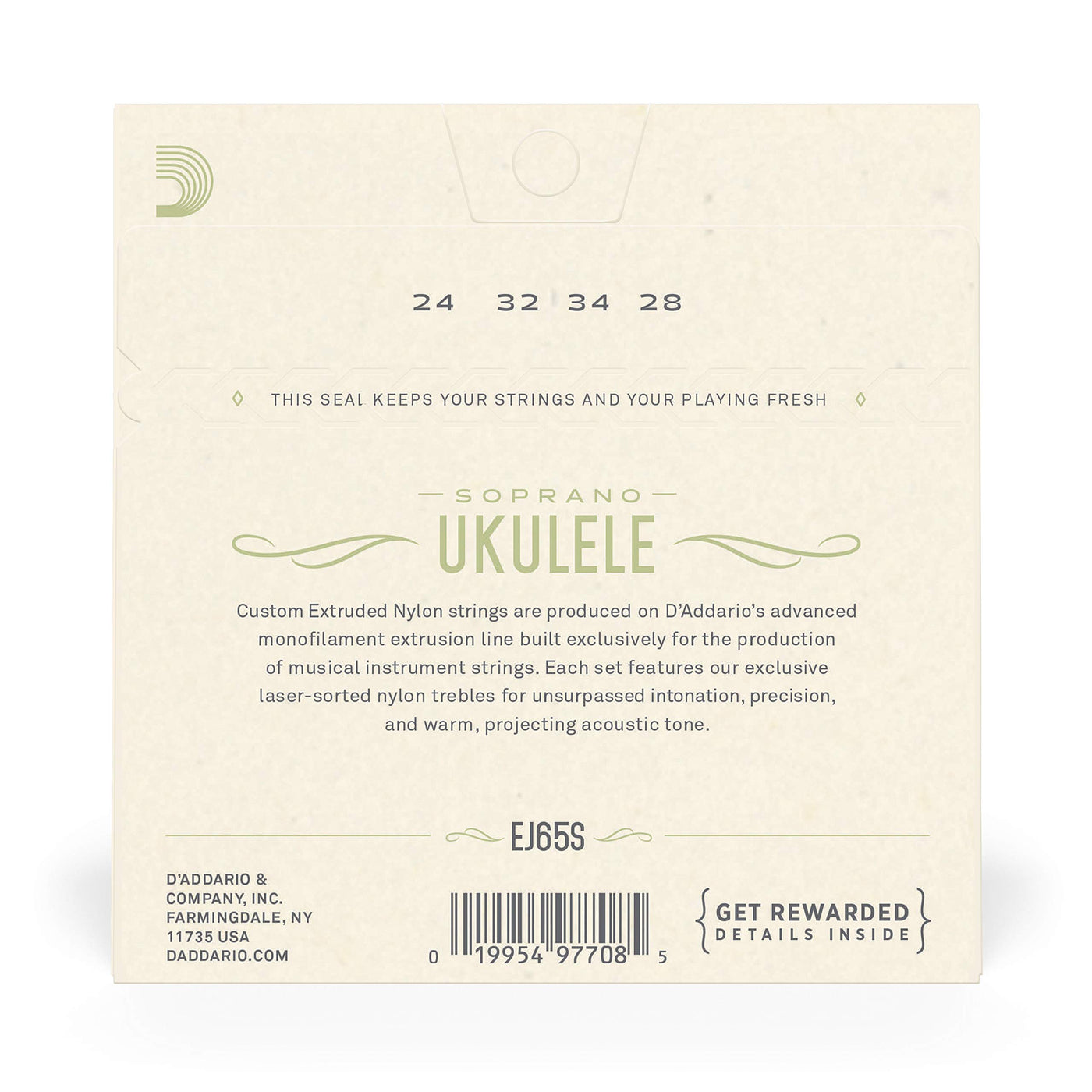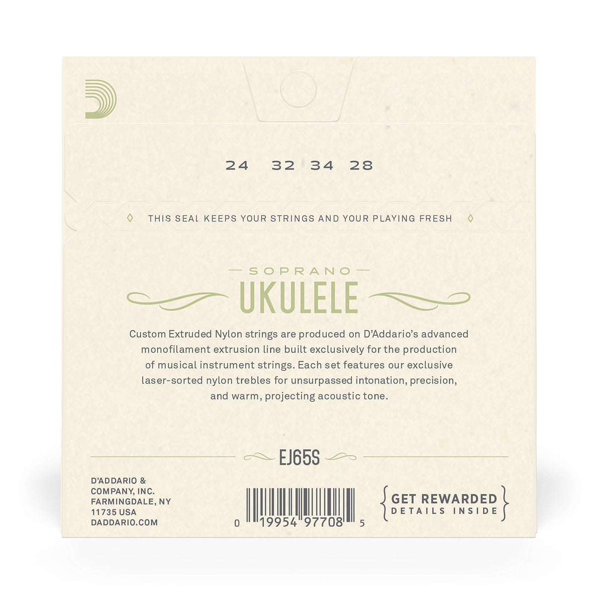 D'Addario Ej65S Is An All-Nylon Set Designed For Use With Soprano Ukuleles. Each String Is Manufactured On D'Addario'S Own Advanced Monofilament Extrusion Line Built Exclusively For The Production Of Musical Instrument Strings. This Set Is Optimized For Usage With Traditional Adf#B Tuning. Each Custom Extruded Nylon Sets Are Manufactured On D'Addario'S Own Advanced Monofilament Extrusion Line Built Exclusively For The Production Of Musical Instrument Strings. Each Set Features Our Exclusive Laser Sorted Pro-Art Clear Nylon Trebles For Unsurpassed Intonation With A Warm, Projecting Acoustic Tone.