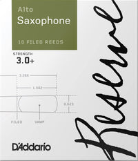 View Largerreserve Alto Saxophone Reedsperfect Your Soundreserve Reeds Are Crafted Using Naturally-Grown Cane From Daddarios Own Fields. Daddario Has Pioneered The First Practical And Precise System To Digitally Measure And Cut The Incredibly Complex Geometrical Patterns Necessary To Reinvent Single Reeds. Reserve Reeds Are Cut To The Tightest Tolerances, Offering The Most Consistent Performance. Tip And Tonereserve Reeds Feature A Thick Blank Which Offers A Rich, Warm Tone With A Heavy Spine That Promotes Dynamic Flexibility. The Construction Also Provides Exceptional Tone Quality In All Registers, A Narrow Rail Slope To Produce Consistency Of Response, And A Traditional Tip Thickness For Ease Of Articulation. Reed Optionsavailable In Half Strengths, From 2.0 To 4.5, With A Special 3.0+ Strength Reserve Alto Features Ideal For The Advancing Student And Professional Expertly Designed And Made In The Usa (From Foreign Materials) By A Team Of Top Musicians And Engineers Offered In Boxes Of 10 And Packs Of 2 Reeds