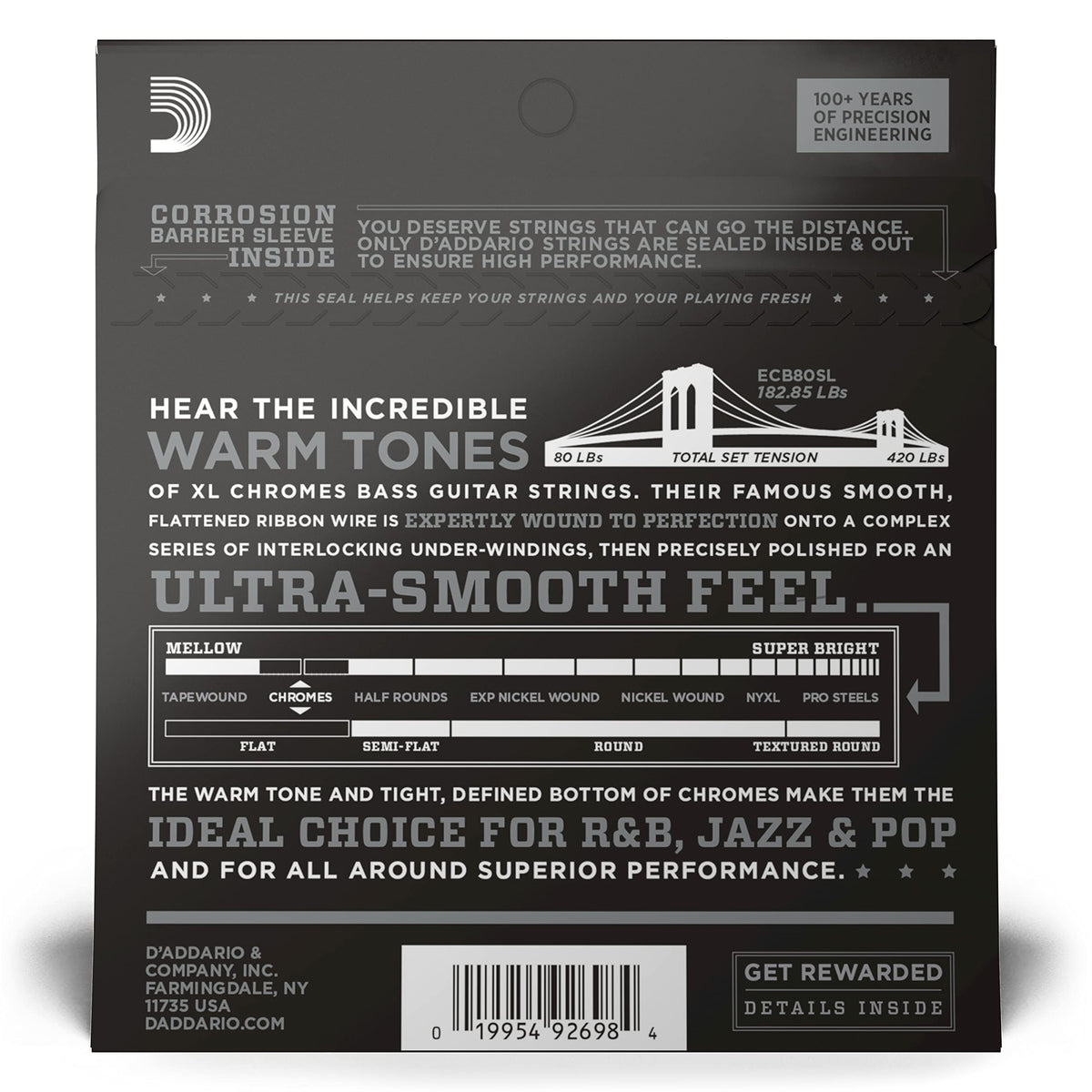 D'Addario Xl Chromes Flat Wound Bass Guitar Strings Ecb80Sl Super Long Scale Super Light, 40 95