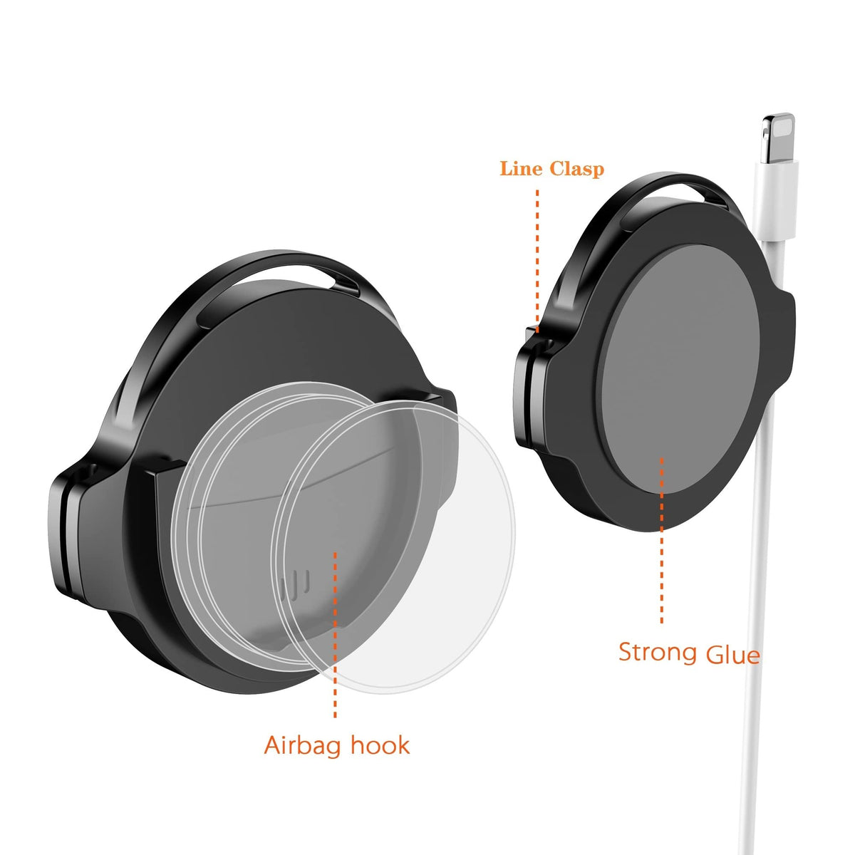 Q: Does the mount help with cable management?A: Yes, the Socket Car Mount features a unique design with angel wings that assist in managing charging cables, keeping your space tidy and organized while allowing for easy access to your device.