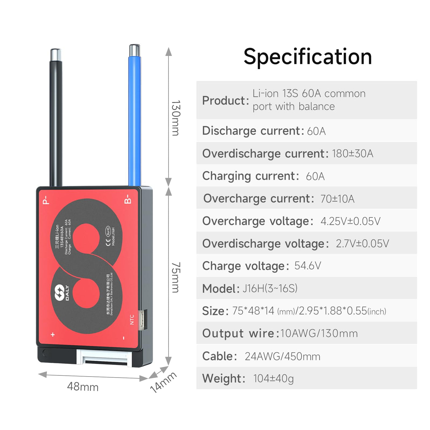 Daly 4S 16S Bms 15A To 200A Protection Board With Balance Wire And Temperature Sensor For Lithium Battery Pack(Li Ion 13S 48V,60