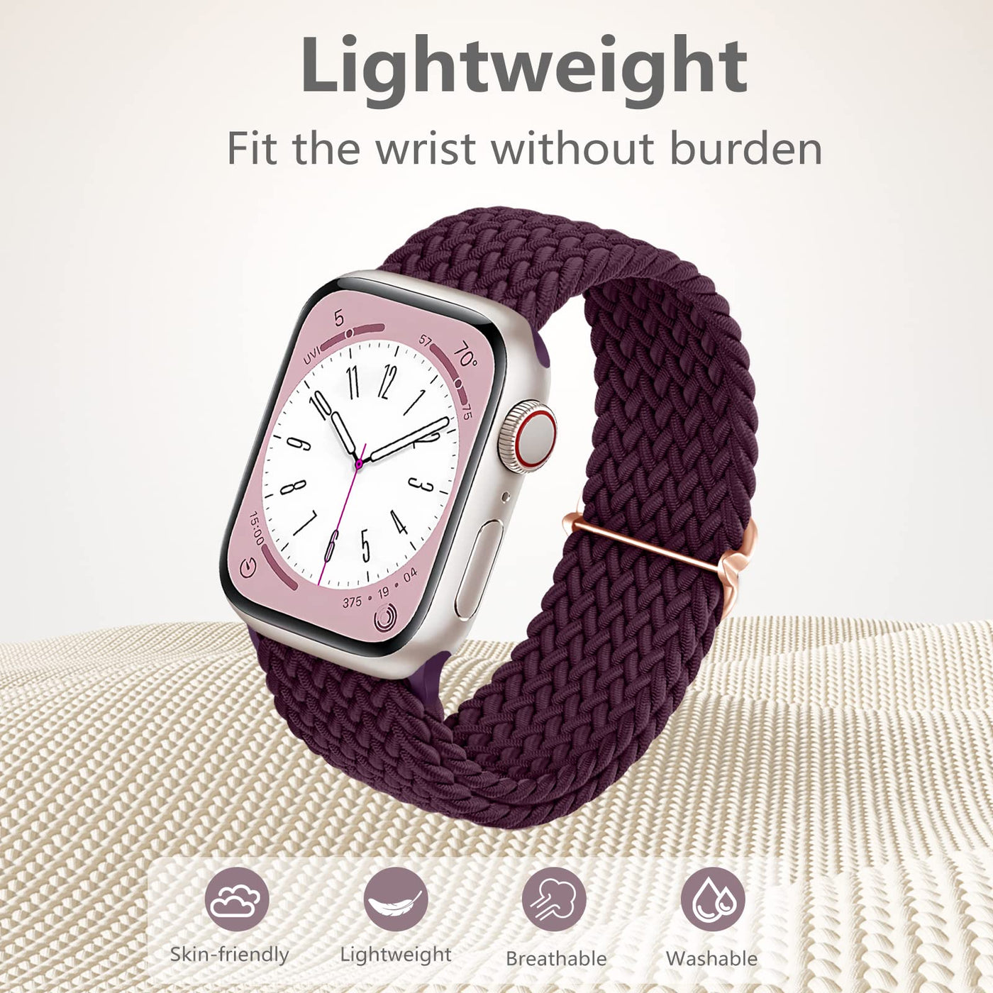Daqin 4 Pack Sport Elastic Bands Compatible With Apple Watch Band 38Mm 40Mm 41Mm 42Mm 44Mm 45Mm 46Mm 49Mm Women Men, Soft Braided Solo Loop Breathable Wristbands For Iwatch Se Series 10 9 8 7 6 5 4 3 2 1 Ultra/Ultra 2 About Daqin? We Focus On Providing High Quality Braided Solo Loop Bands For Apple Watch. Daqin Service: We Provide 24H Service. If You Have Any Questions, Pls Feel Free To Contact Us. Adjustability: Compatible With Apple Watch Ultra/Ultra 2 Band 49Mm Compatible With Apple Watch Series 10 Band 42Mm/46Mm Compatible With Apple Watch Series 9 Band 45Mm/41Mm Compatible With Apple Watch Series 8 Band 45Mm/41Mm Compatible With Apple Watch Series 7 Band 41Mm/45Mm Compatible With Apple Watch Series 6 5 4 44Mm/40Mm Compatible With Apple Watch Series 3 2 1 38Mm/42Mm Compatible With Apple Watch Se 44Mm/40Mm Material: These Woven Bands For Apple Watch Are Made Of High Quality Recycled Polyamide That Is Skin Friendly, Non-Irritating, Soft, Durable, Lightweight, Washable, And Super Comfortable For Work And Everyday Use. Adjustability: The Sport Braided For Apple Watch Bands With An Innovative Reinforced Stainless Steel Buckle Makes The Length Of The Loop Easily Adjustable, Fit For 4.5''-9.0'' Wrists. Easy To Install And Remove: Daqin Sport Bands Come With Watch Lugs On Both Ends, Which Locks Onto Iwatch Interface Precisely And Securely, Easy Install And One Button Removal, No Tool Needed. Multiple Colors: Fashionable Versatile Color Braided Watch Bands In One Pack And Newest Popular Colors For You To Choose, Such As Starlight, Black, Rose Pink, Pride Edition, Dark Cherry...Personalize Your Iwatch To Your Mood And Outfit In Everyday, Easy Change For Any Occasion. Best Gift: Daqin Stretchy Iwatch Bands Are Suitable As A Special Gift For Family Friends On Father'S Day, Mother'S Day, Birthday, Halloween, Christmas, Valentines' Day, Thanksgiving Day, New Year, Holidays...