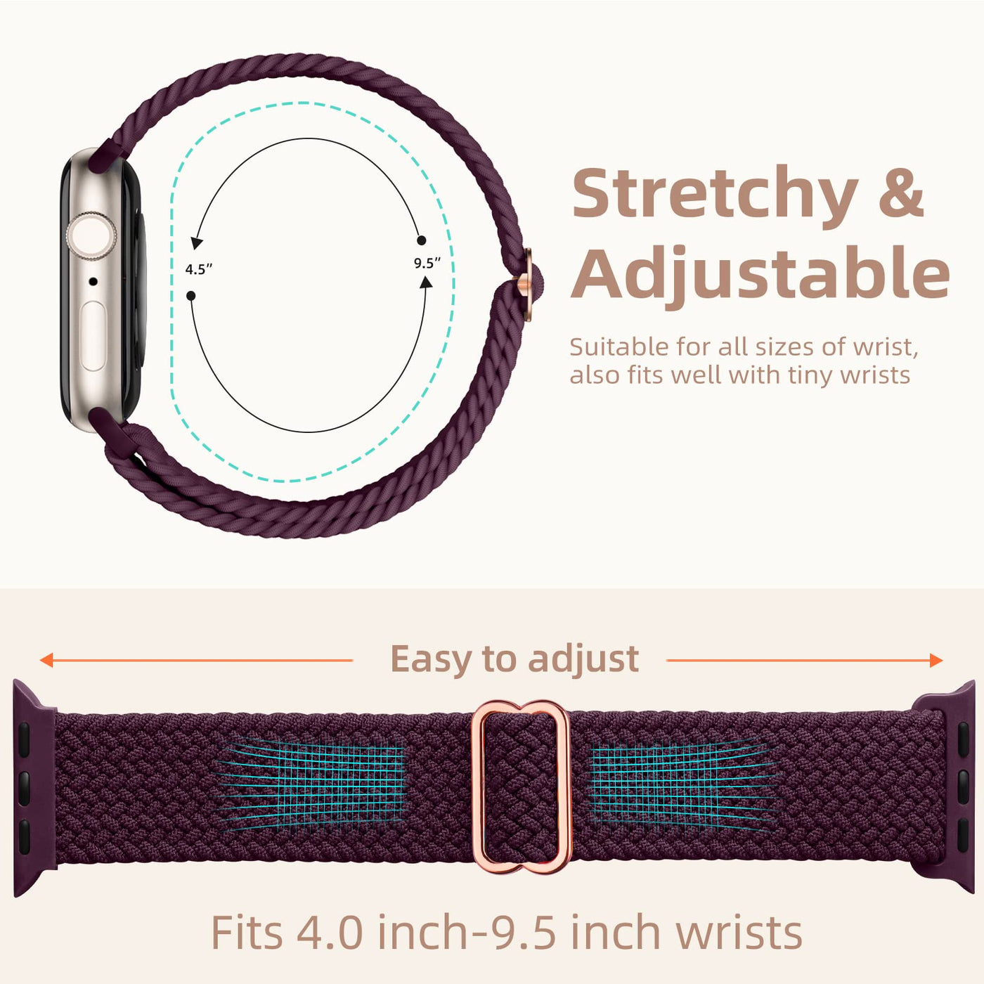Daqin 4 Pack Sport Elastic Bands Compatible With Apple Watch Band 38Mm 40Mm 41Mm 42Mm 44Mm 45Mm 46Mm 49Mm Women Men, Soft Braided Solo Loop Breathable Wristbands For Iwatch Se Series 10 9 8 7 6 5 4 3 2 1 Ultra/Ultra 2 About Daqin? We Focus On Providing High Quality Braided Solo Loop Bands For Apple Watch. Daqin Service: We Provide 24H Service. If You Have Any Questions, Pls Feel Free To Contact Us. Adjustability: Compatible With Apple Watch Ultra/Ultra 2 Band 49Mm Compatible With Apple Watch Series 10 Band 42Mm/46Mm Compatible With Apple Watch Series 9 Band 45Mm/41Mm Compatible With Apple Watch Series 8 Band 45Mm/41Mm Compatible With Apple Watch Series 7 Band 41Mm/45Mm Compatible With Apple Watch Series 6 5 4 44Mm/40Mm Compatible With Apple Watch Series 3 2 1 38Mm/42Mm Compatible With Apple Watch Se 44Mm/40Mm Material: These Woven Bands For Apple Watch Are Made Of High Quality Recycled Polyamide That Is Skin Friendly, Non-Irritating, Soft, Durable, Lightweight, Washable, And Super Comfortable For Work And Everyday Use. Adjustability: The Sport Braided For Apple Watch Bands With An Innovative Reinforced Stainless Steel Buckle Makes The Length Of The Loop Easily Adjustable, Fit For 4.5''-9.0'' Wrists. Easy To Install And Remove: Daqin Sport Bands Come With Watch Lugs On Both Ends, Which Locks Onto Iwatch Interface Precisely And Securely, Easy Install And One Button Removal, No Tool Needed. Multiple Colors: Fashionable Versatile Color Braided Watch Bands In One Pack And Newest Popular Colors For You To Choose, Such As Starlight, Black, Rose Pink, Pride Edition, Dark Cherry...Personalize Your Iwatch To Your Mood And Outfit In Everyday, Easy Change For Any Occasion. Best Gift: Daqin Stretchy Iwatch Bands Are Suitable As A Special Gift For Family Friends On Father'S Day, Mother'S Day, Birthday, Halloween, Christmas, Valentines' Day, Thanksgiving Day, New Year, Holidays...