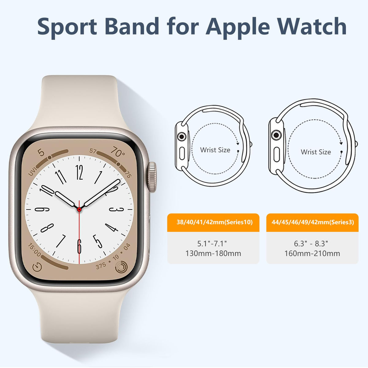 Q: What sizes do the DaQin sport bands fit?A: The DaQin sport bands come in multiple sizes: the 38mm/40mm/41mm size fits wrists measuring 5.1" to 7.1" (130mm-180mm), while the 42mm/44mm/45mm size fits wrists measuring 5.9" to 7.9" (150mm-200mm).