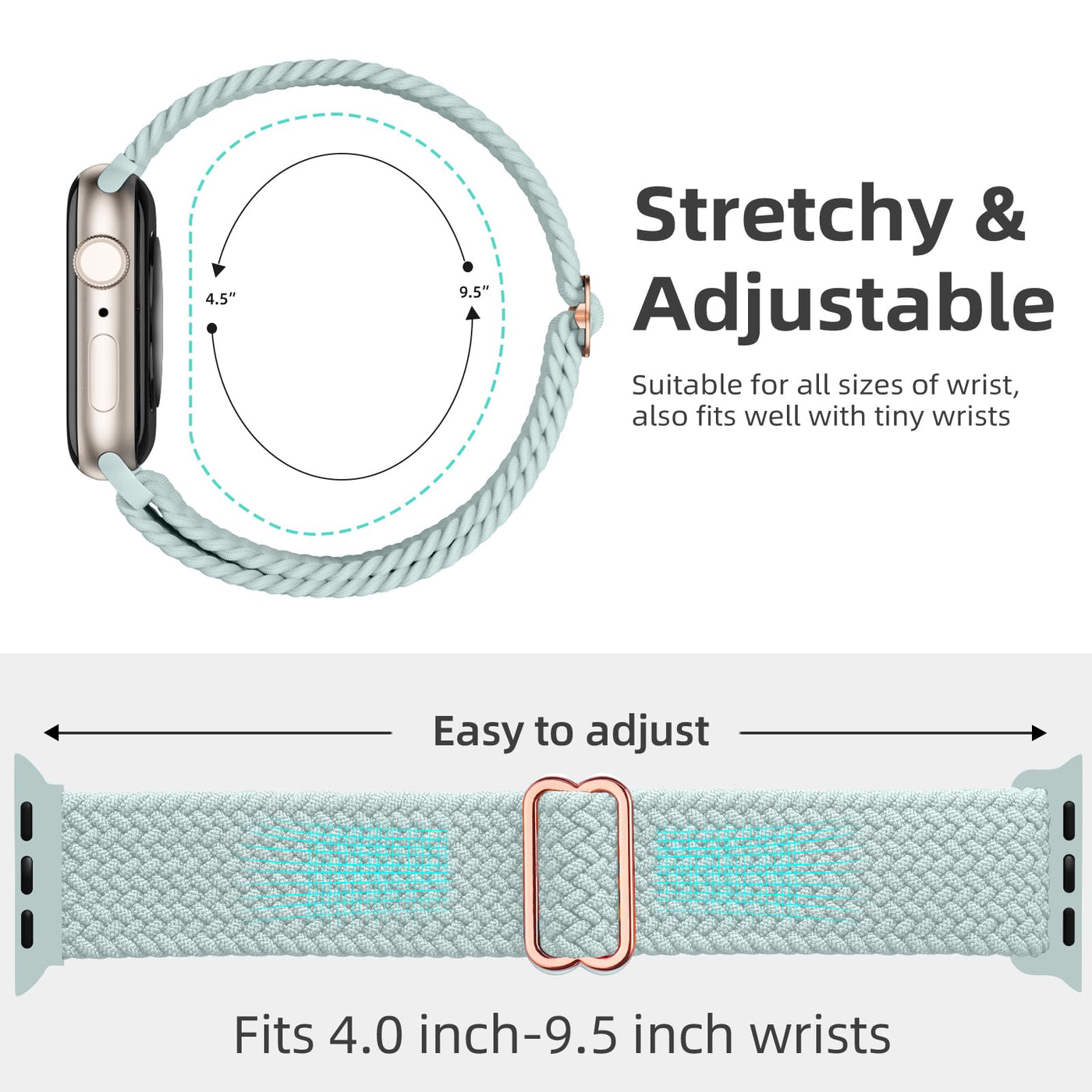 Daqin 4 Pack Sport Elastic Bands Compatible With Apple Watch Band 38Mm 40Mm 41Mm 42Mm 44Mm 45Mm 46Mm 49Mm Women Men, Soft Braided Solo Loop Breathable Wristbands For Iwatch Se Series 10 9 8 7 6 5 4 3 2 1 Ultra/Ultra 2 About Daqin? We Focus On Providing High Quality Braided Solo Loop Bands For Apple Watch. Daqin Service: We Provide 24H Service. If You Have Any Questions, Pls Feel Free To Contact Us. Adjustability: Compatible With Apple Watch Ultra/Ultra 2 Band 49Mm Compatible With Apple Watch Series 10 Band 42Mm/46Mm Compatible With Apple Watch Series 9 Band 45Mm/41Mm Compatible With Apple Watch Series 8 Band 45Mm/41Mm Compatible With Apple Watch Series 7 Band 41Mm/45Mm Compatible With Apple Watch Series 6 5 4 44Mm/40Mm Compatible With Apple Watch Series 3 2 1 38Mm/42Mm Compatible With Apple Watch Se 44Mm/40Mm Material: These Woven Bands For Apple Watch Are Made Of High Quality Recycled Polyamide That Is Skin Friendly, Non-Irritating, Soft, Durable, Lightweight, Washable, And Super Comfortable For Work And Everyday Use. Adjustability: The Sport Braided For Apple Watch Bands With An Innovative Reinforced Stainless Steel Buckle Makes The Length Of The Loop Easily Adjustable, Fit For 4.5''-9.0'' Wrists. Easy To Install And Remove: Daqin Sport Bands Come With Watch Lugs On Both Ends, Which Locks Onto Iwatch Interface Precisely And Securely, Easy Install And One Button Removal, No Tool Needed. Multiple Colors: Fashionable Versatile Color Braided Watch Bands In One Pack And Newest Popular Colors For You To Choose, Such As Starlight, Black, Rose Pink, Pride Edition, Dark Cherry...Personalize Your Iwatch To Your Mood And Outfit In Everyday, Easy Change For Any Occasion. Best Gift: Daqin Stretchy Iwatch Bands Are Suitable As A Special Gift For Family Friends On Father'S Day, Mother'S Day, Birthday, Halloween, Christmas, Valentines' Day, Thanksgiving Day, New Year, Holidays...
