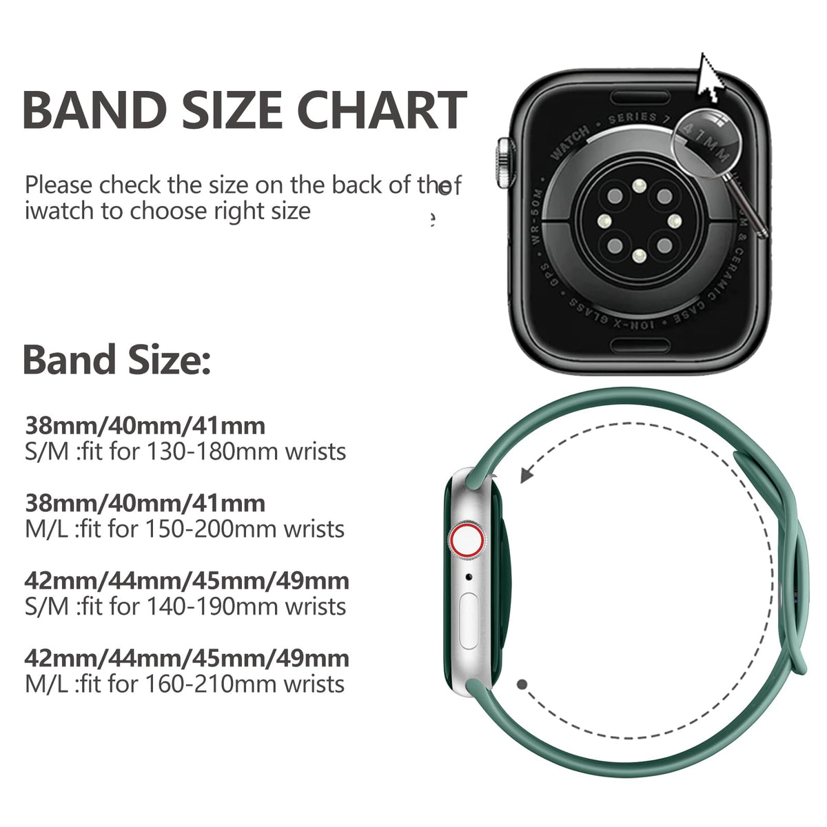 Q: How do I choose the right size for the DaQin Apple Watch band?A: To select the right size, measure your wrist and refer to the size options provided. The 38/40/41/42mm sizes come in S/M (suitable for 5.1"-7.1") and M/L (suitable for 5.9"-7.9") options. The 44/45/46/49/42mm sizes also offer S/M (5.5"-7.5") and M/L (6.3"-8.3") size choices.