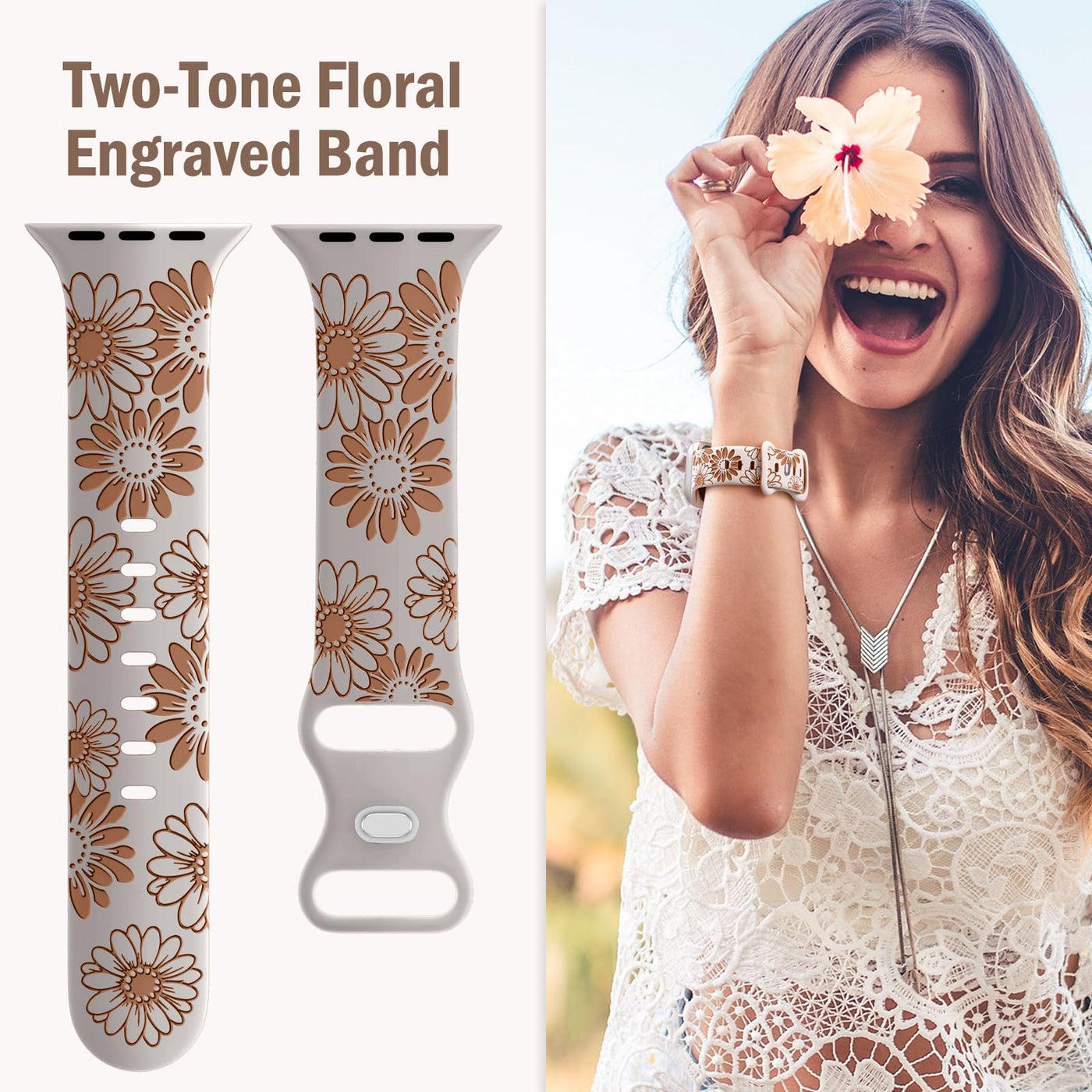 Daqin Floral Engraved Band Compatible With Apple Watch Bands 40Mm 41Mm 44Mm 45Mm 42Mm 38Mm 49Mm For Women, Cute Flower Iwatch Bands Soft Silicone Sport Replacement Strap For Apple Watch Series 9 8 7 6 5 4 3 2 1 Se Ultra 2/Ultra About Daqin? We Focus On Providing High Quality Silicone Floral Engraved Bands For Apple Watch. We Pay Attention To Every Detail Of Our Products And Are Committed To Creating The Best Replacement Band For You.. Daqin Service: We Provide 24H Service. If You Have Any Questions, Please Feel Free To Contact Us. Adjustability: Compatible With Apple Watch Bands For Women Compatible With Apple Watch Band Compatible With Apple Watch Bands For Men Compatible With Apple Watch Bands Compatible With Iwatch Bands For Women Compatible With Apple Watch Ultra 2 Band Compatible With Apple Watch Ultra Band Compatible With Apple Watch Bands 44Mm Compatible With Apple Watch Bands 40Mm Compatible With Apple Watch Se Band Compatible With Apple Watch Band 45Mm Compatible With Apple Watch Series 9 Band Compatible With Iwatch Bands Compatible With 44Mm Apple Watch Band For Women Compatible With Apple Watch Series 9 45Mm Band Compatible With 45Mm Apple Watch Band Compatible With 40Mm Apple Watch Bands For Women Compatible With Apple Watch Bands 41Mm Compatible With Apple Watch Bands For Women 45Mm Compatible With 41Mm Apple Watch Band For Women Compatible With Apple Watch Bands For Women 44Mm Premium Silicone Material: Crafted From High-Quality Silicone, This Band Offers A Perfect Blend Of Comfort And Durability, Ensuring Long-Lasting Wear Without Sacrificing Style Or Functionality. Easy Installation And Removal: Say Goodbye To Complicated Setups! Daqin Band Features A User-Friendly Design, Making It Effortless To Install And Remove, So You Can Switch Up Your Look In Seconds.