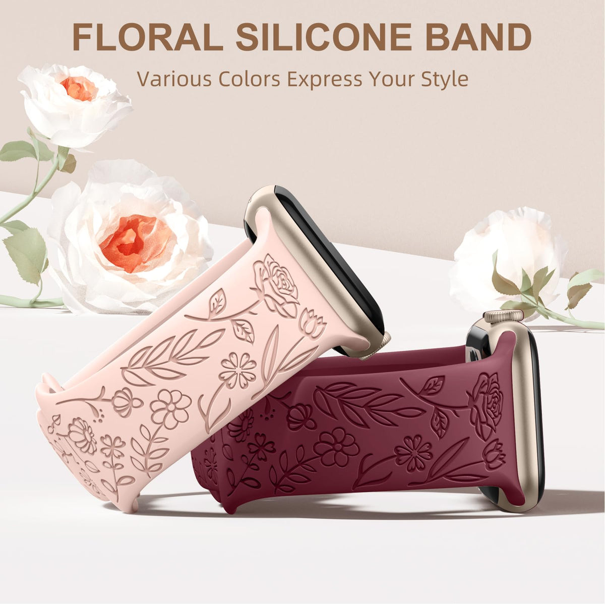 Daqin Sport Elegant Floral Bands Compatible With Apple Watch Band 38Mm 40Mm 41Mm 42Mm 44Mm 45Mm 49Mm Women Men,Soft Silicone Breathable Wristbands Replacement For Apple Watch Ultra Iwatch Se Series 8 Series 7 6 5 4 3 2 1 Why Choose Daqin We Focus On Providing High Quality Watch Bands For Apple Watch Daqin Unique Flower Engraving Bands For Women With Gorgeous Embossed Engraved Pattern Design Its Soft, Pretty, Flexible, Lightweight, Sweat & Water Resistant, Odorless, Non-Fading, Safe For The Skin And Brings You A More Comfortable Wearing Experience Daqin Service: We Adhere To Maintain Standard Quality To Our Customers If You Have Any Questions, Pls Feel Free To Contact Us Compatible Models: Compatible With Apple Watch Ultra 49Mm Band Compatible With Apple Watch Series 8 41Mm45Mm Band Compatible With Apple Watch Series 7 41Mm45Mm Band Compatible With Apple Watch Series 6 5 4 44Mm40Mm Band Compatible With Apple Watch Series 3 2 1 38Mm42Mm Band Compatible With Apple Watch Se Band 44Mm40Mm Note:Please Choose The Correct Watch Model To Make Sure Choose The Right Wristband Features: Comfortable Material: Made Of Skin-Friendly Silicone Material Newest Upgrade Design: Daqin Silicone Bands For Apple Watch Band 38Mm Come With Pin-And-Tuck Closure Design That Holds Your Iwatch Bands Securely In Place Which More Stable And Secure, Suitable For Daily Wear, Sport And Work 4 Pack Included: Daqin For Apple Watch Bands Are Available In A Variety Of Colors To Match Different Outfits And Moods Personalize Your Smartwatch To Make It More Attractive, Adds A Little Pizzazz To The Iwatch Band Easy To Install And Remove: Daqin Sport Bands Come With Watch Lugs On Both Ends, Which Locks Onto Iwatch Interface Precisely And Securely, Easy And Direct Installation And One Button Removal, No Tool Needed What You Get: 4 X Pack Replacement Bands For Apple Watch