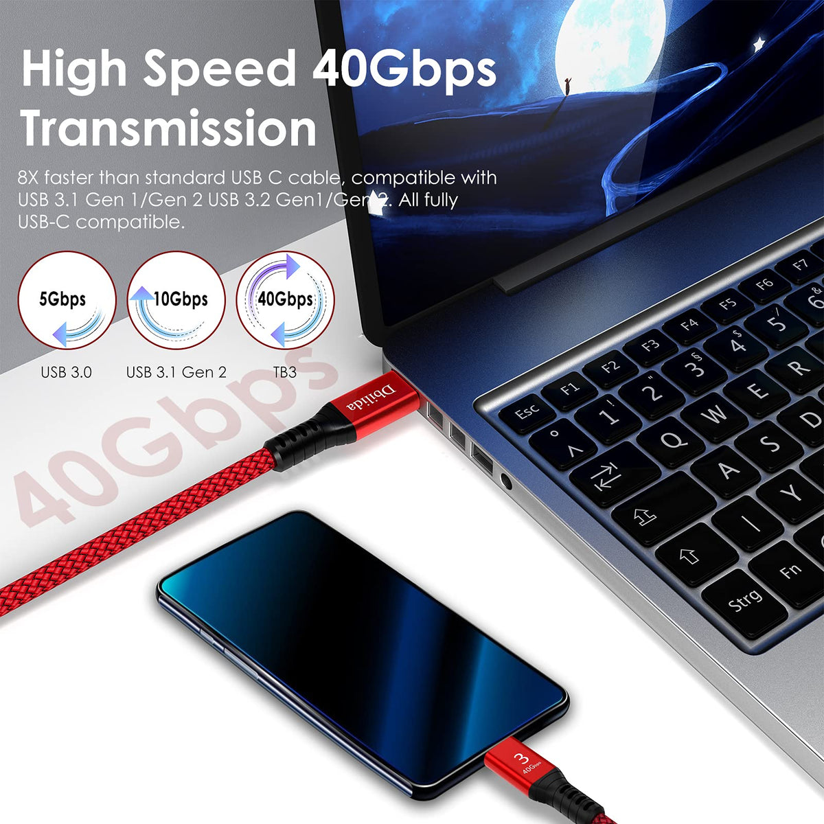 ?Customer Service & Support?Regarding 240W For Thunderbolt 3 Cable Issues And Other Issues, We Will Assist You In Resolving Them Within 10 Hours. | ?40Gbps & 240W?This Usb C Cable Is Designed For Thunderbolt 3 Cable, Its Supports An Amazing Speed Of Up To 40 Gbps To Transmit Data, 8X Faster Than Standard Usb 3.0. Support Usb Pd 3.1 Extended Power Range (Epr) Including 140W, 180W And 240W(48V/5A). All Fully Usb-C Compatible. Plug And Play. | ?8K/5K@60Hz & Dual 4K60?The Resolution Of Dbilida Usb C Cable Is Up To 8K/5K@60Hz. Its Supports 8K/5K@60Hz, 4K@144Hz/120Hz On A Single Screen And 4K@60Hz On Two Screens At The Same Time. Note*If You Connect To Usb C Port For Video Output, Please Make Sure Your Device Supports Alt Mode, This Setup Only One 4K Can Display. The Conductor Is Made Of 28Awg Silver-Plated Copper, Higher Performance And Connectivity. | ?Premium Structure?Dbilida For Thunderbolt 3 Cable With Heavy Duty Nylon Braided, Quality Nylon Braided Jacket With 18,000+ Bend Lifespan. This Usb C Cable Has Quadruple Shielded And Tinplate Can Extremely Resistant With Emi/Rfi Interference And Provide Highest Fidelity For Long Distance Data Transmission, A Premium Zinc Alloy Shell To Effectively Maximizes Heat Dissipation. Tested Plugging And Unplugging Over 10,000+. | ?Compatibility?The Usb C Connector Is Built In Smart Cypd2704 Chip, Has A Strong Compatibility And Stable Signal Transmission. Compatible With All Thunderbolt 3 Devices And Also Backward Compatible With Iphone 15/Plus/Pro/Pro Max, Usb 2.0, 3.1 Gen 1, And 3.1 Gen 2. It Perfectly For Ipad Pro 2020/2019/2018, Macbook Pro 2020 16'', Samsung Galaxy S8, Galaxy S8 +, Google Pixel, Egpu,Etc.