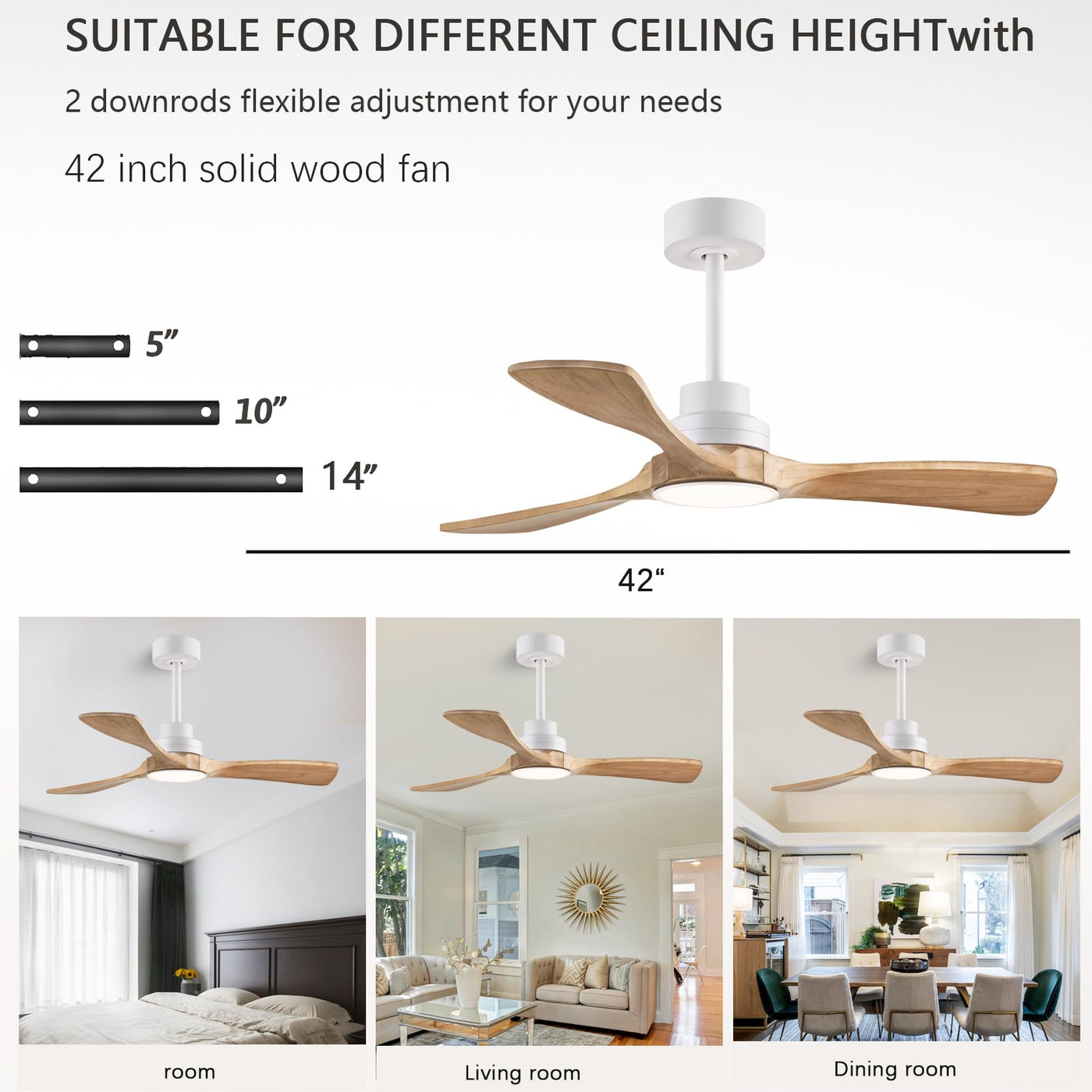 Dearnow 42'' Ceiling Fans With Lights With Remote Control, Indoor Outdoor Wooden Ceiling Fan With 3 Wooden Blades For Patio, Liv