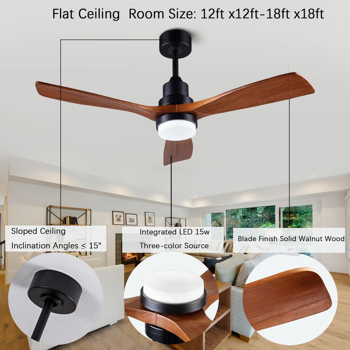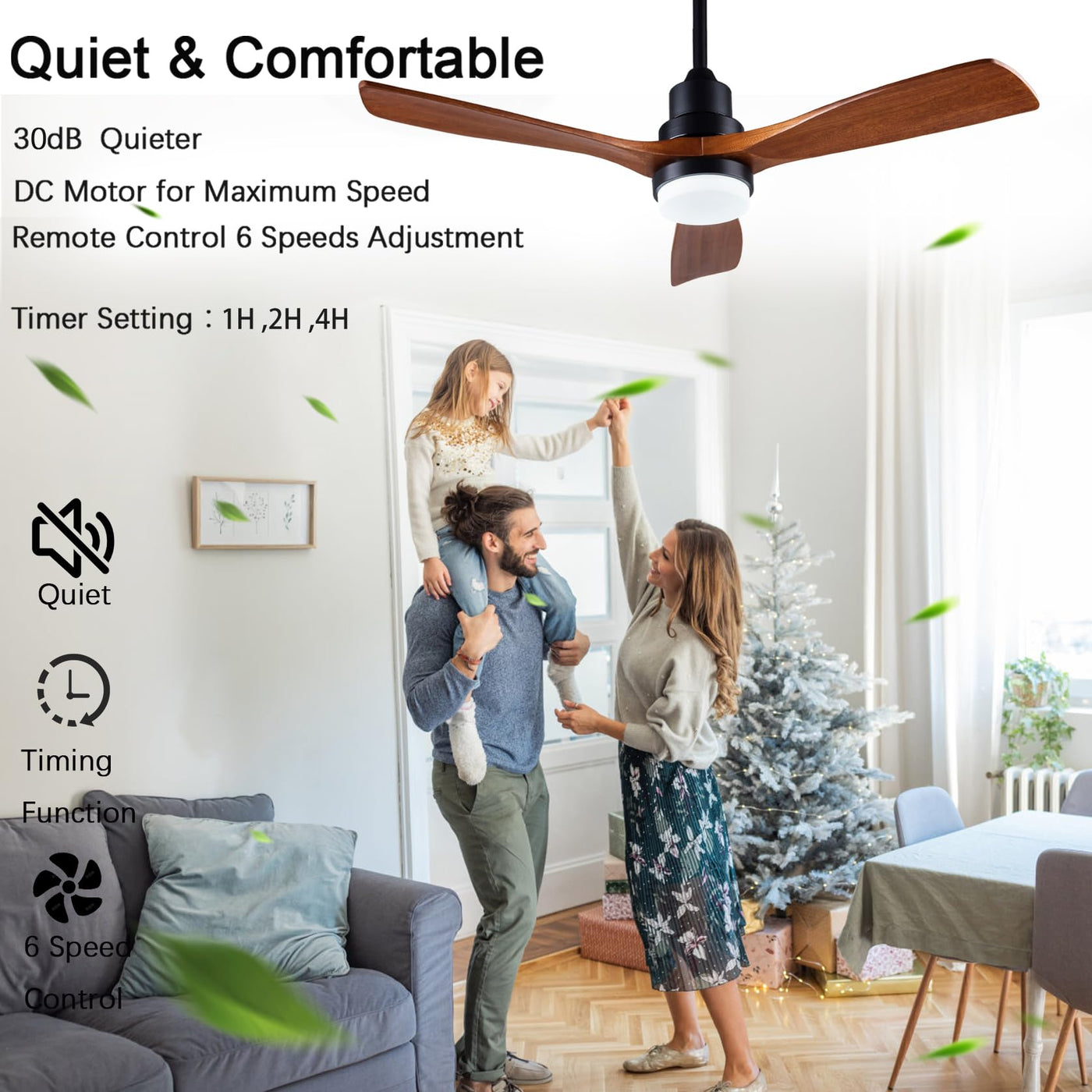 Dearnow 48'' Wooden Ceiling Fans With Lighted Remote Control, Indoor Outdoor Wooden Ceiling Fan, Outdoor Modern Ceiling Fan With