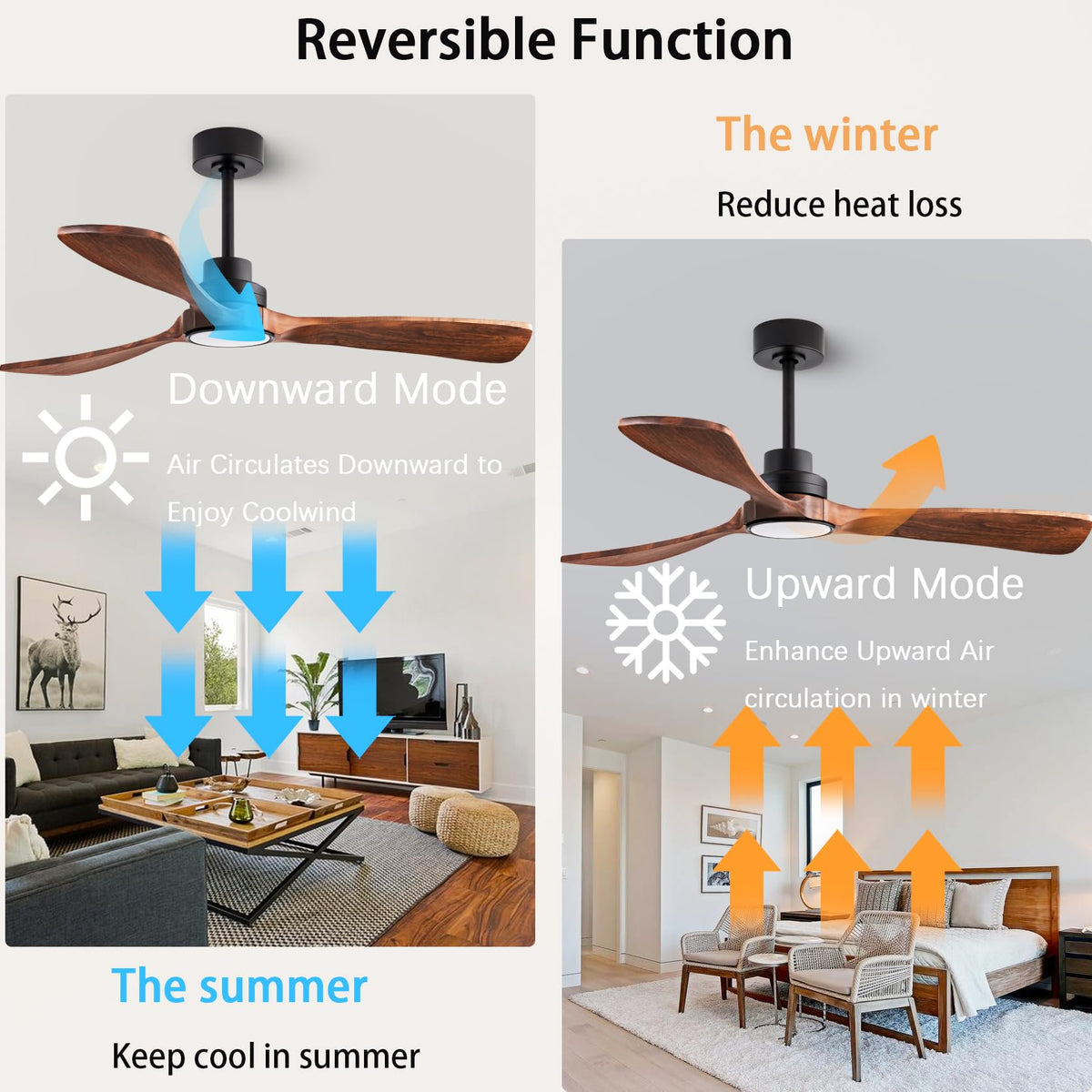 52-Inches Modern Ceiling Fan, No Light Remote Control Ceiling Fan, Indoor/Outdoor Suitable For Farmhouse, Bedroom, Office, Winter And Summer Use.