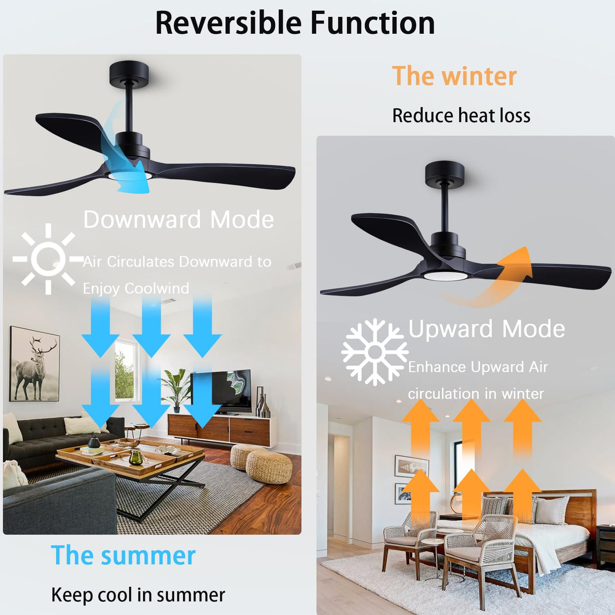 Q: Can the dearnow ceiling fan be used in both summer and winter?A: Yes, the dearnow ceiling fan is designed for year-round use. It features a reversible motor, allowing you to switch between forward and reverse rotation for optimal airflow in summer and efficient heating distribution in winter.
