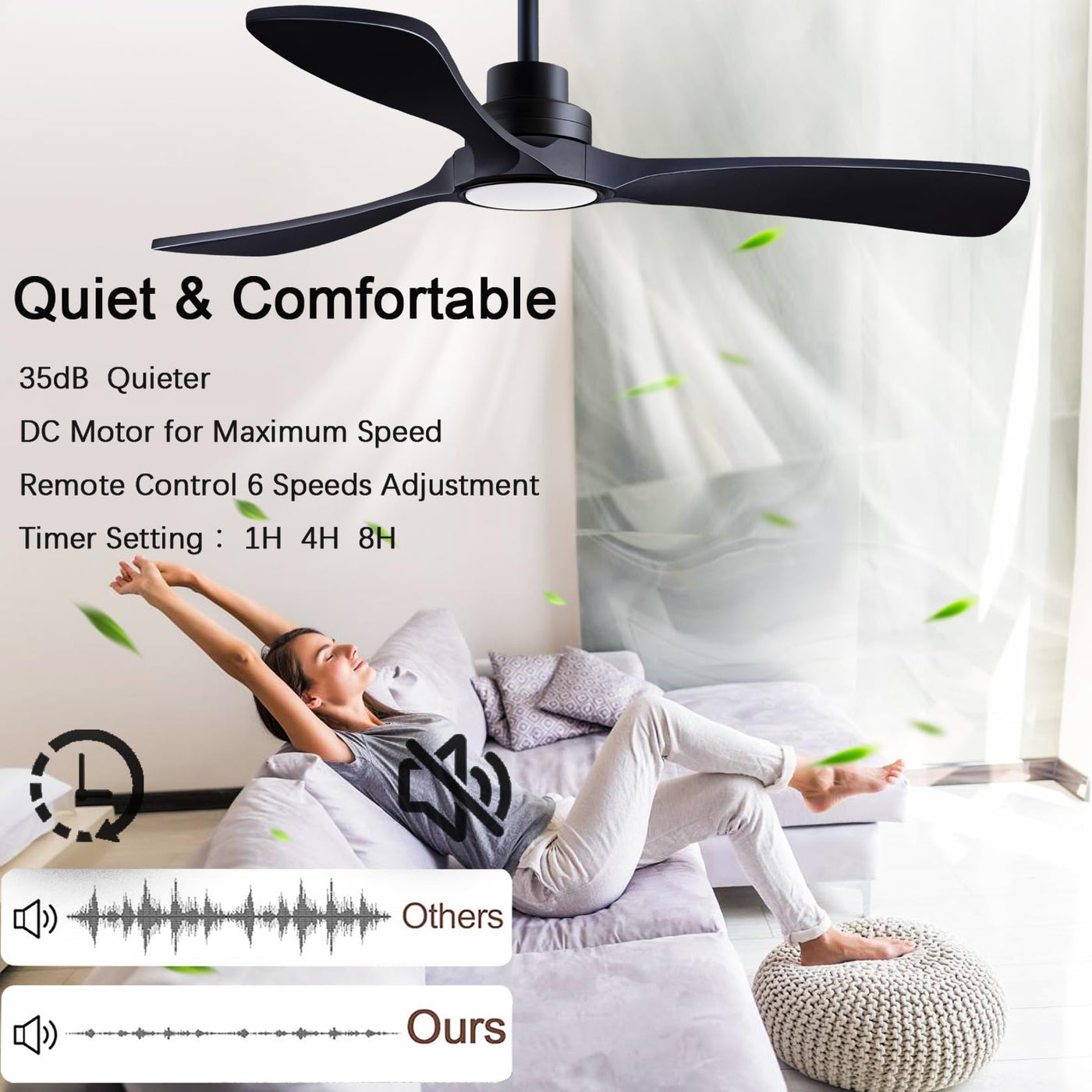 Q: How do I adjust the light settings on the remote control?A: To adjust the light settings on the dearnow ceiling fan, use the remote control to select your desired color temperature. To set the light, turn it off and wait for 15 seconds before turning it back on, and the light will retain the last selected color temperature.