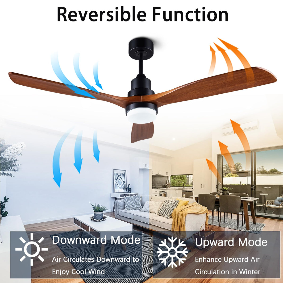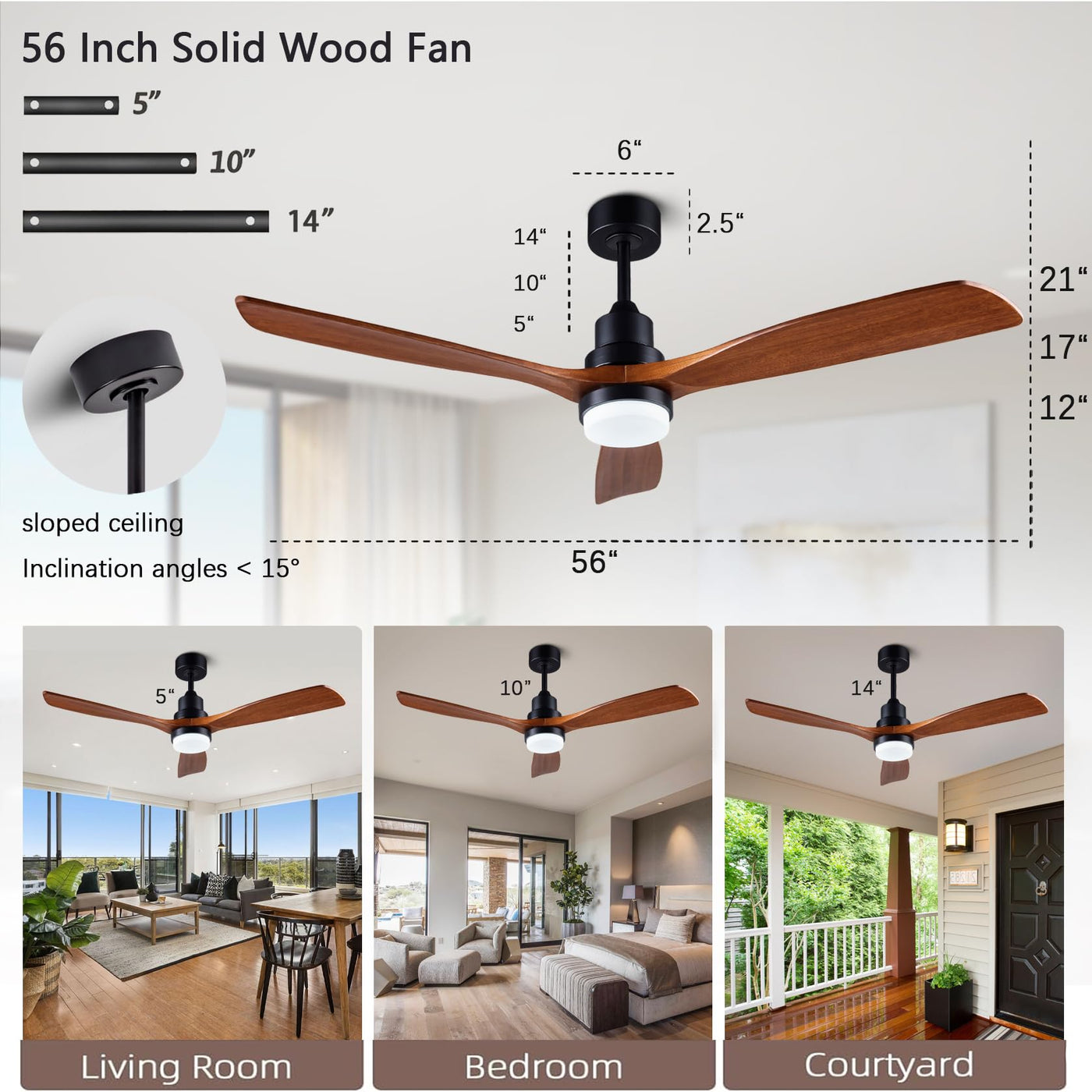 Dearnow 56'' Wooden Ceiling Fans With Lighted Remote Control, Indoor Outdoor Wooden Ceiling Fan, Outdoor Modern Ceiling Fan With