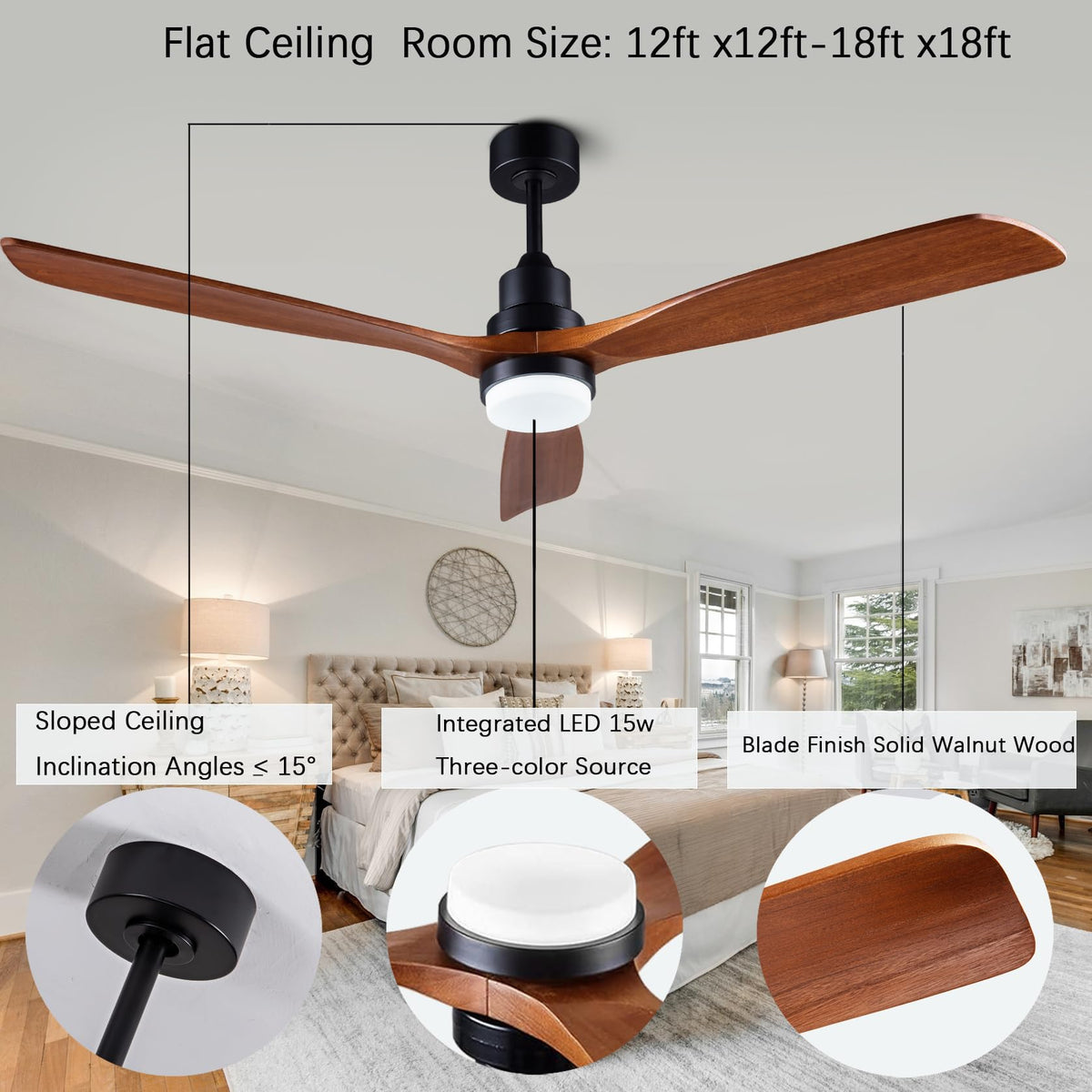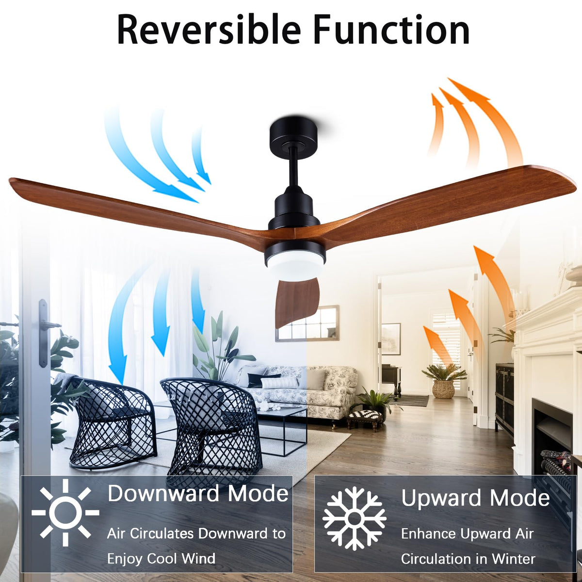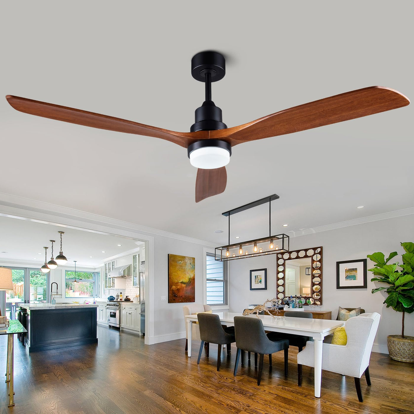 Dearnow 60 Ceiling Fan [With Lighting Remote], Indoor Outdoor Mute, Modern Wooden Ceiling Fan [With 3 Solid Wood Blades] For