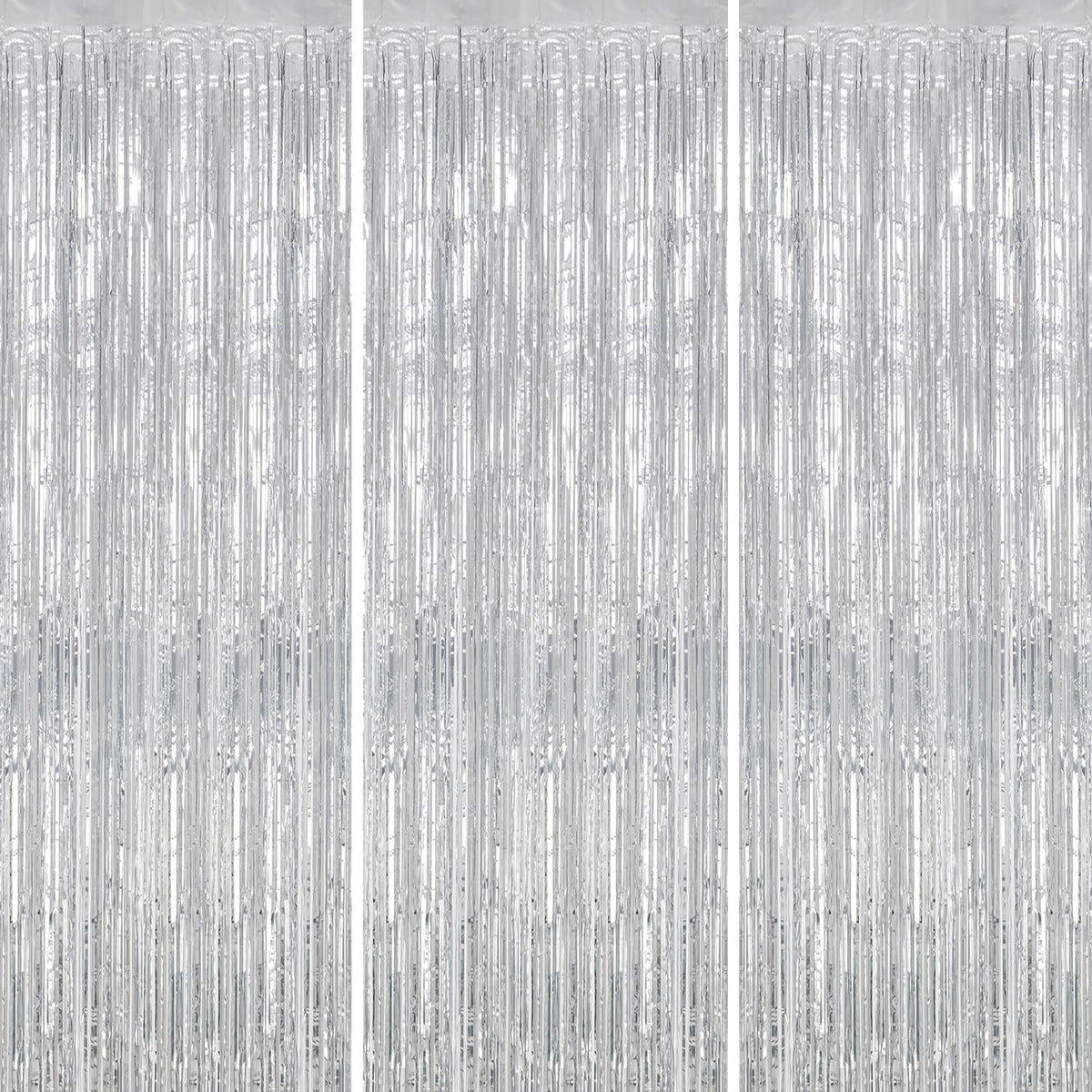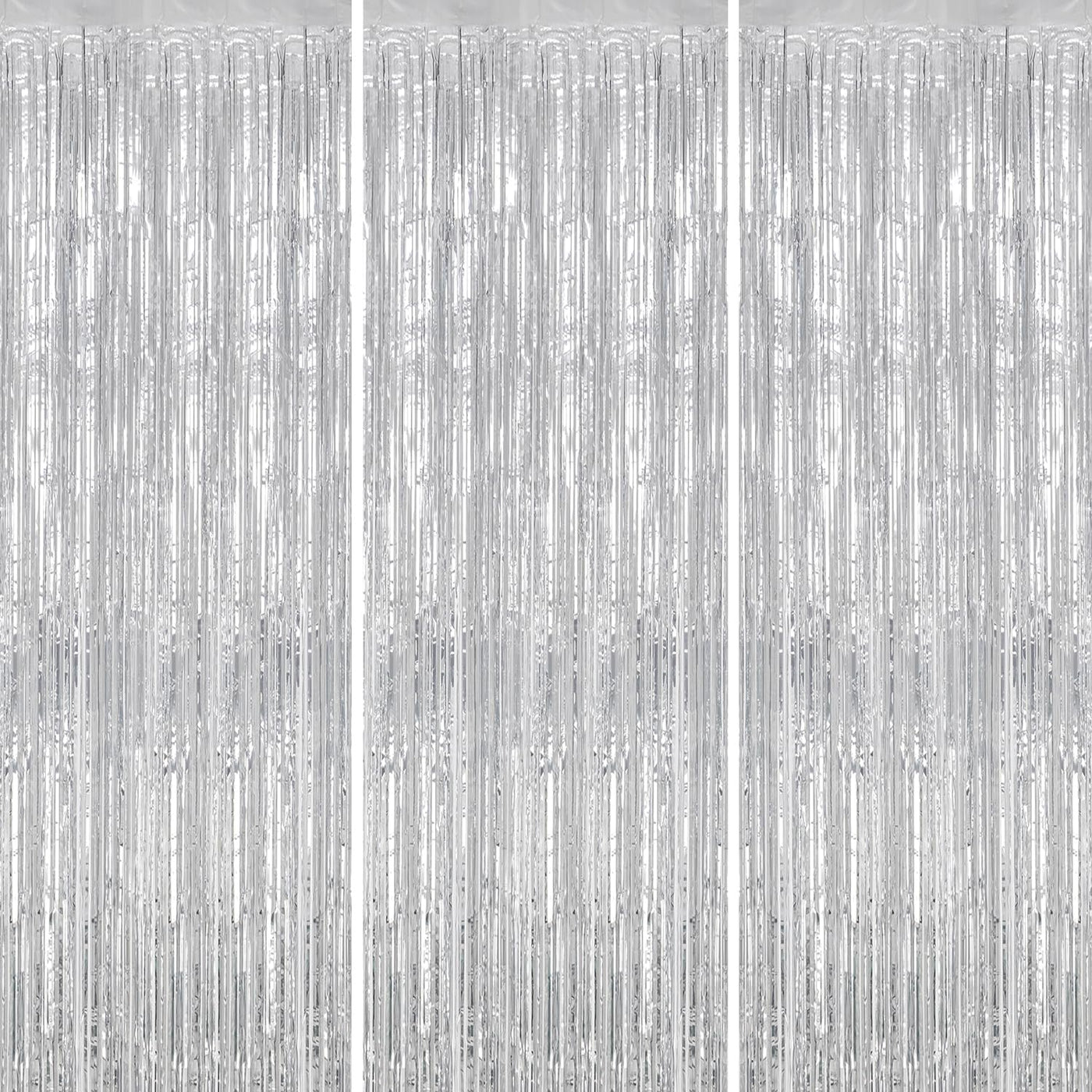 Decockrat 3 Pack Foil Fringe Backdrop Silver Shiny Tinsel Curtains For Party Decoration/Photo Booth Props 3.3X8.2 Ft Metalli