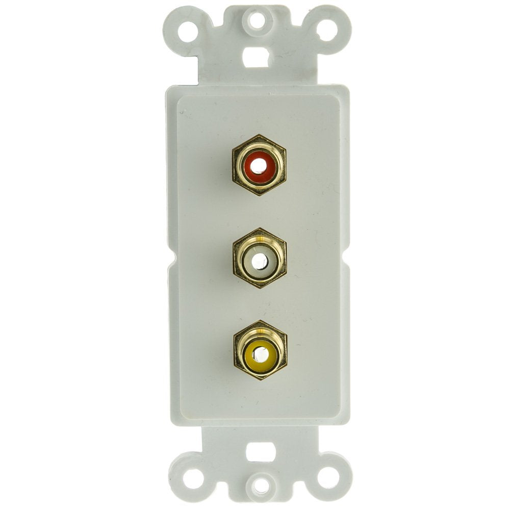 Rca A V White Decora Wall Plate Insert, 3 Rca Female Couplers (Red White Yellow).Connection: Rca Composite Video Audio Male Jacks. Connection: Rca Composite Video Audio Male Jacks. Color: White. Weight: .8 Lbs.