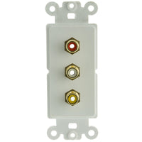 Decora Wall Plate Insert, White, 3 Rca Couplers (Red/White/Yellow), Rca Female