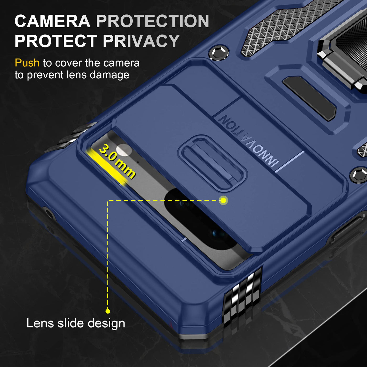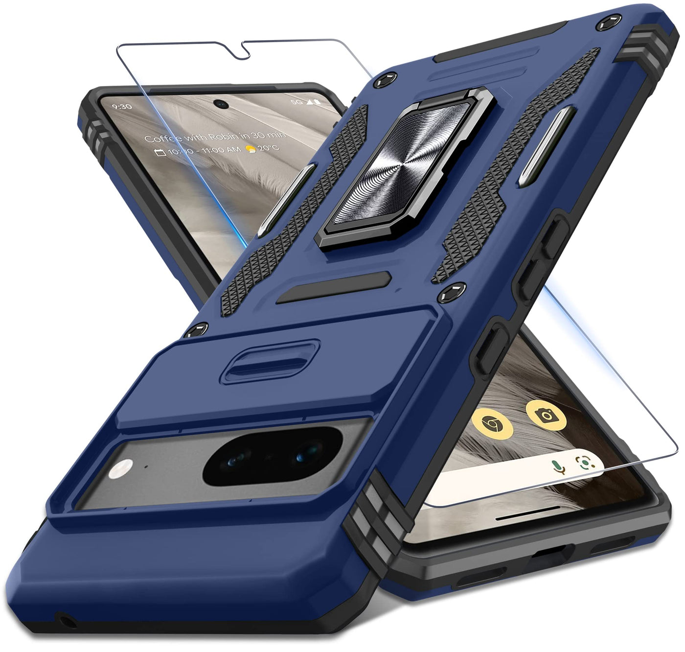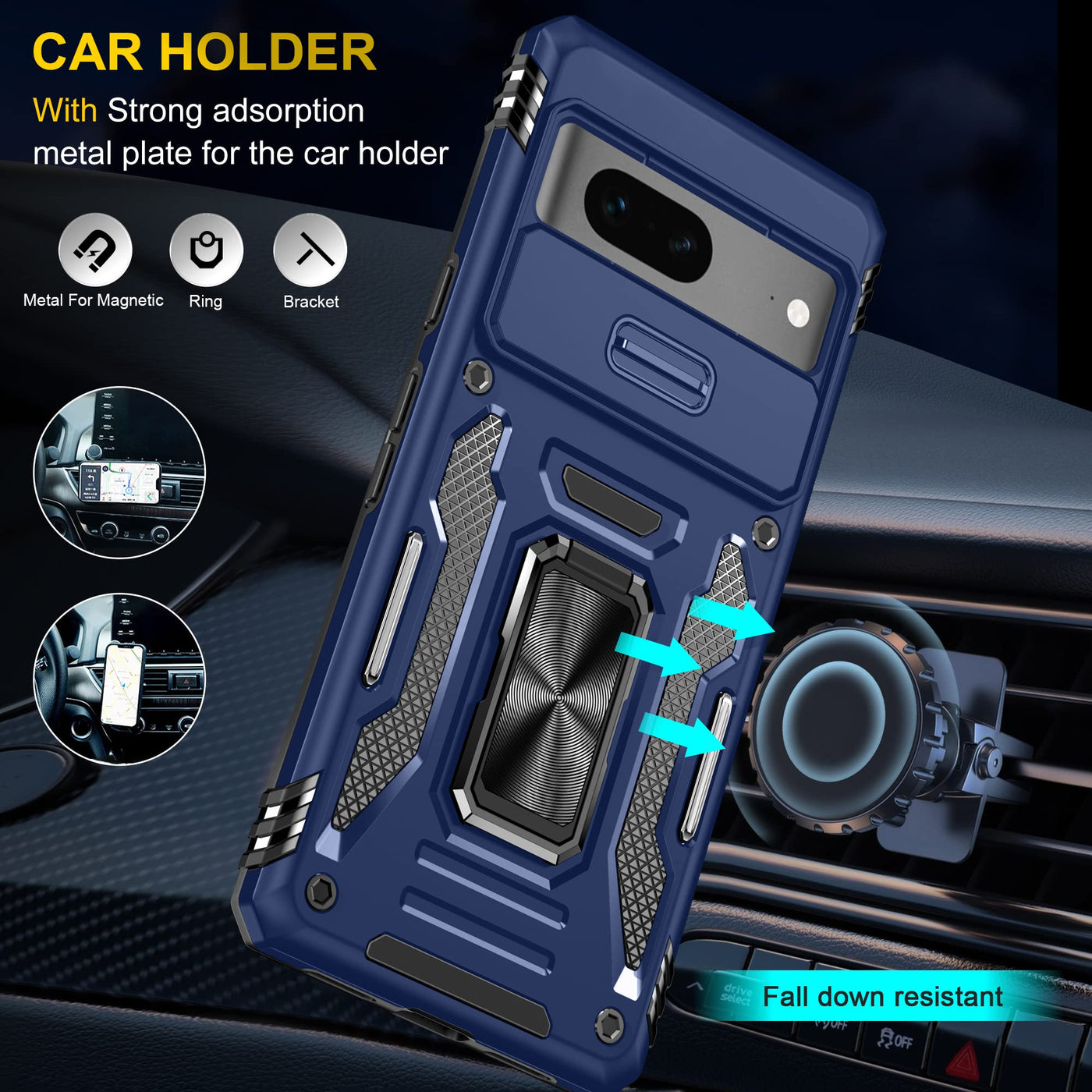 Deerlamn Case For Google Pixel 7 With Slide Camera Cover+Screen Protector(1 Pack), Rotated Ring Kickstand Military Grade Shockpr