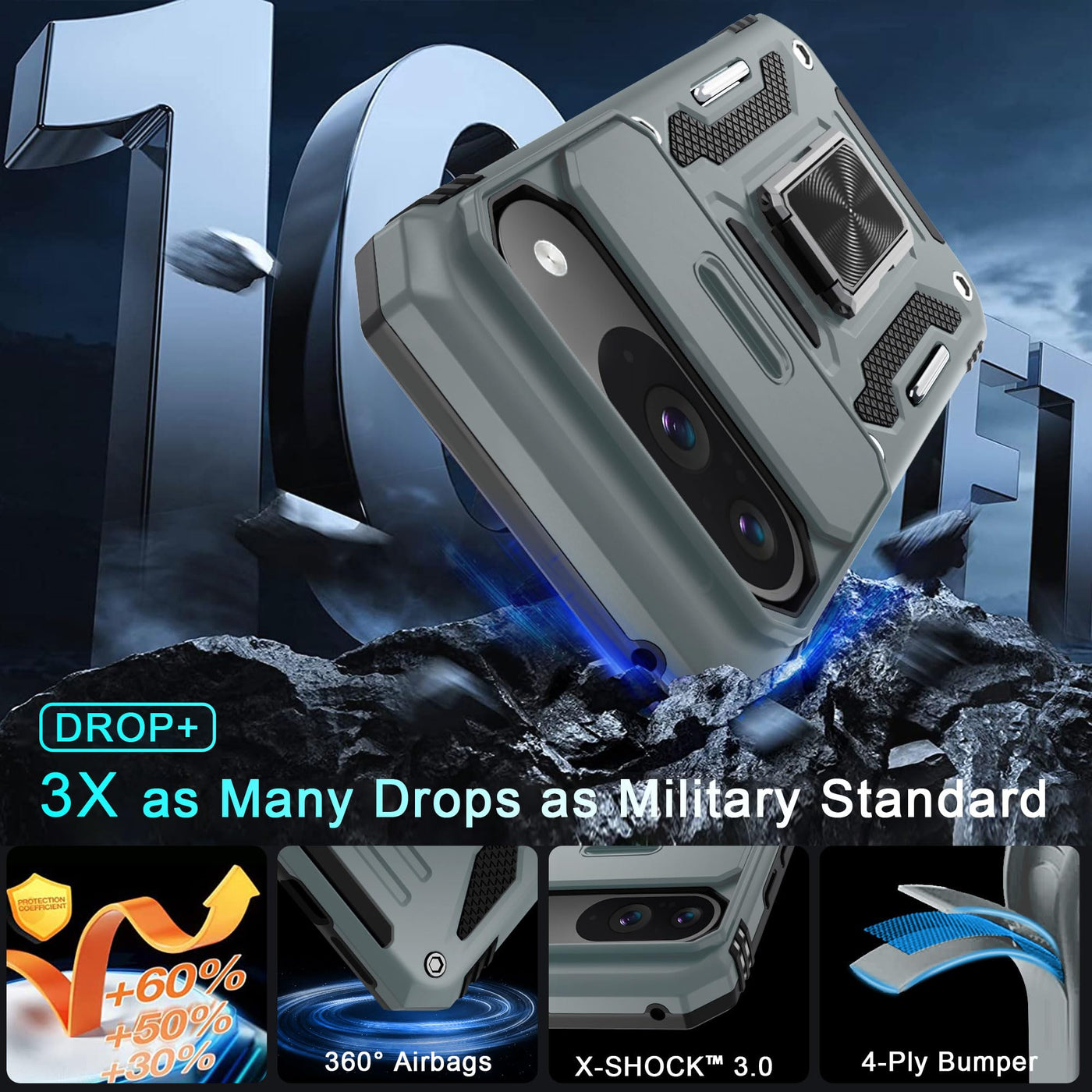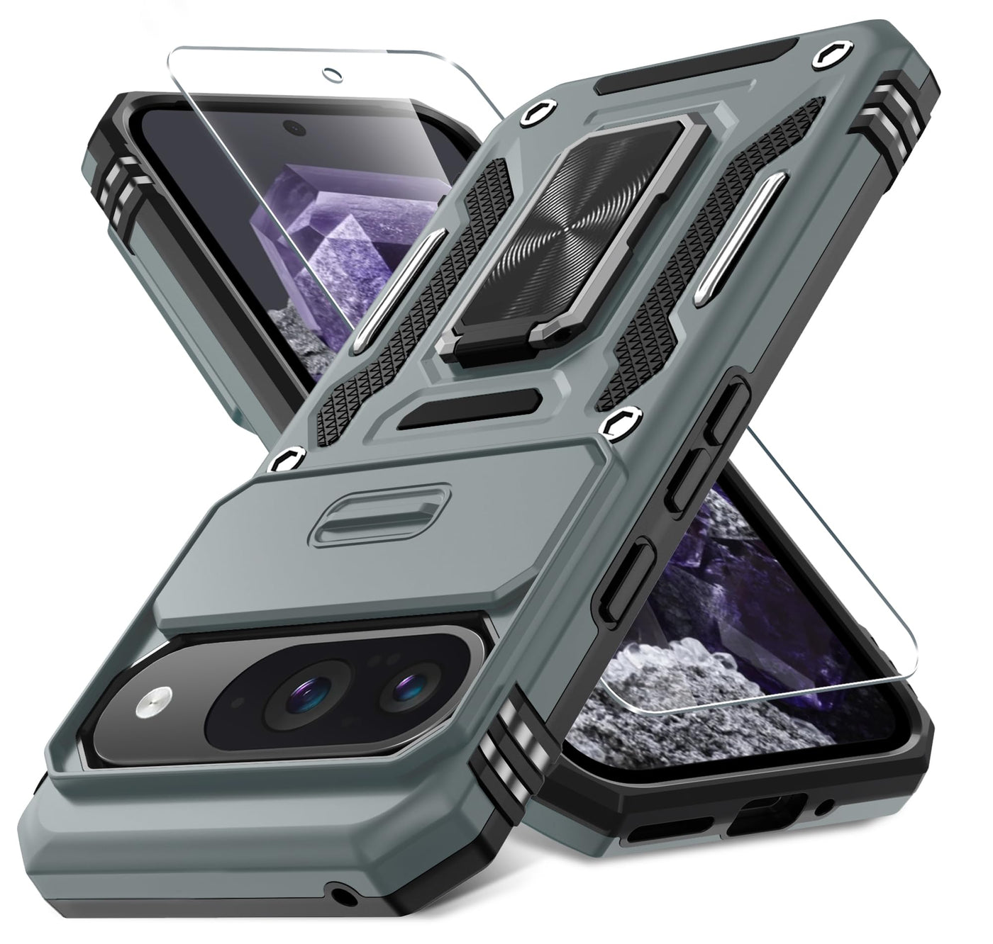 Deerlamn Case For Google Pixel 9/9 Pro With Slide Camera Cover+Screen Protector(1 Pack), Rotated Ring Kickstand Military Grade S