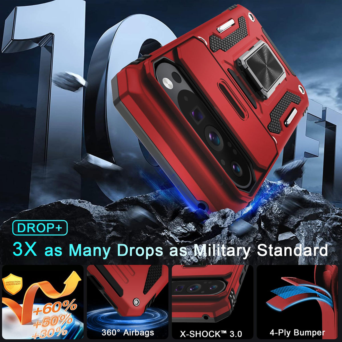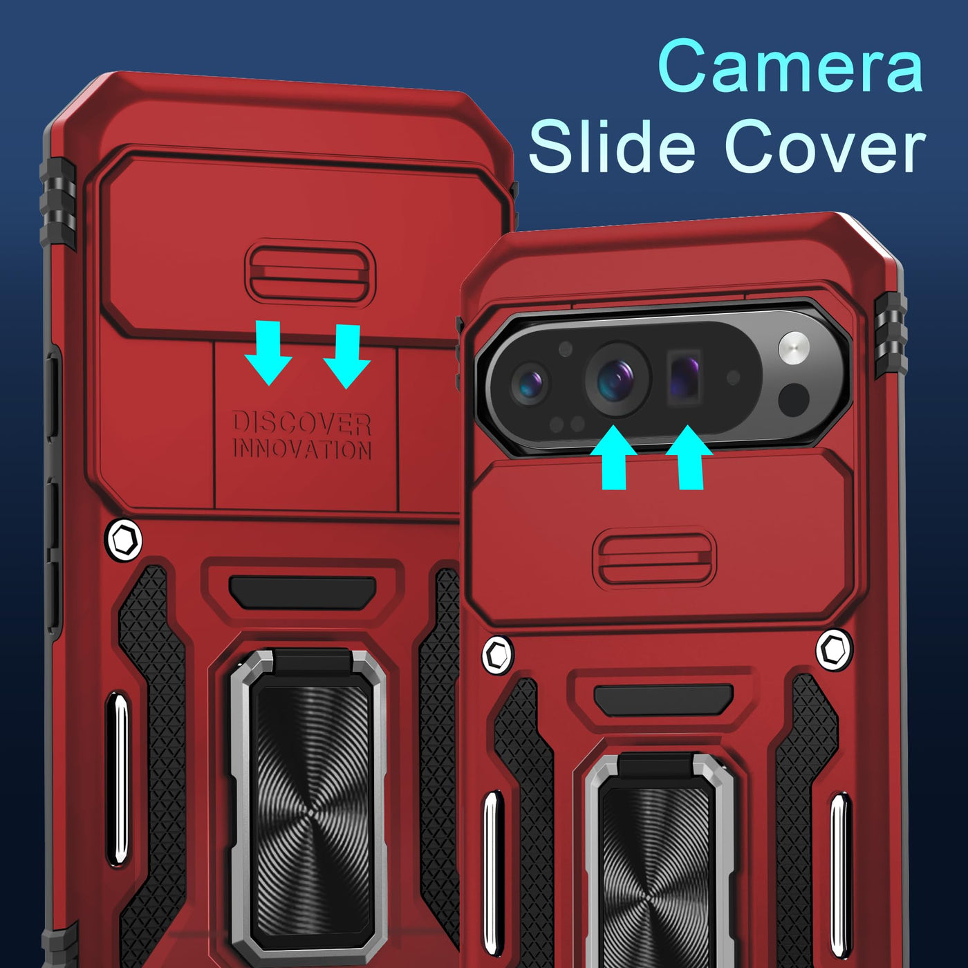 Deerlamn Case For Google Pixel 9 Pro Xl With Slide Camera Cover+Screen Protector(1 Pack), Rotated Ring Kickstand Military Grade