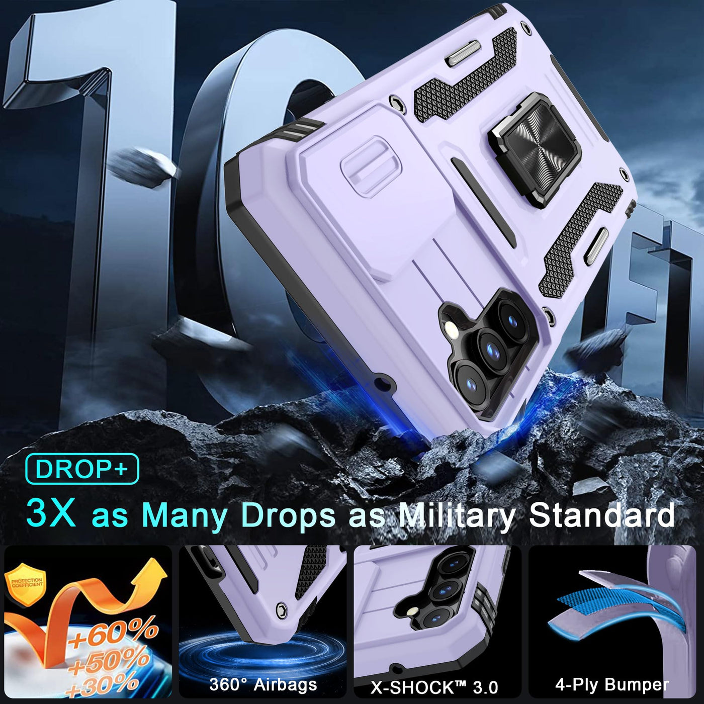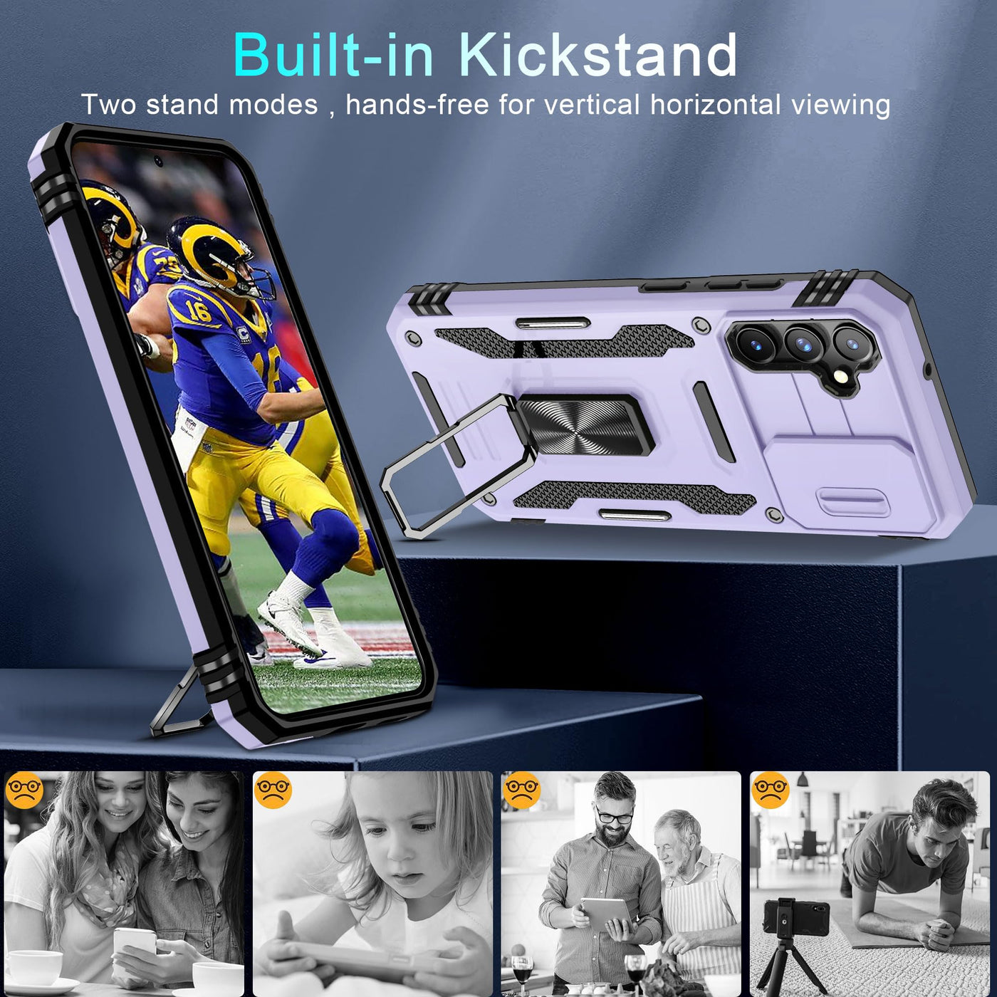 Deerlamn Case For Samsung Galaxy S23 Fe With Slide Camera Cover+Screen Protector(1 Pack),Rotated Ring Kickstand Military Grade S