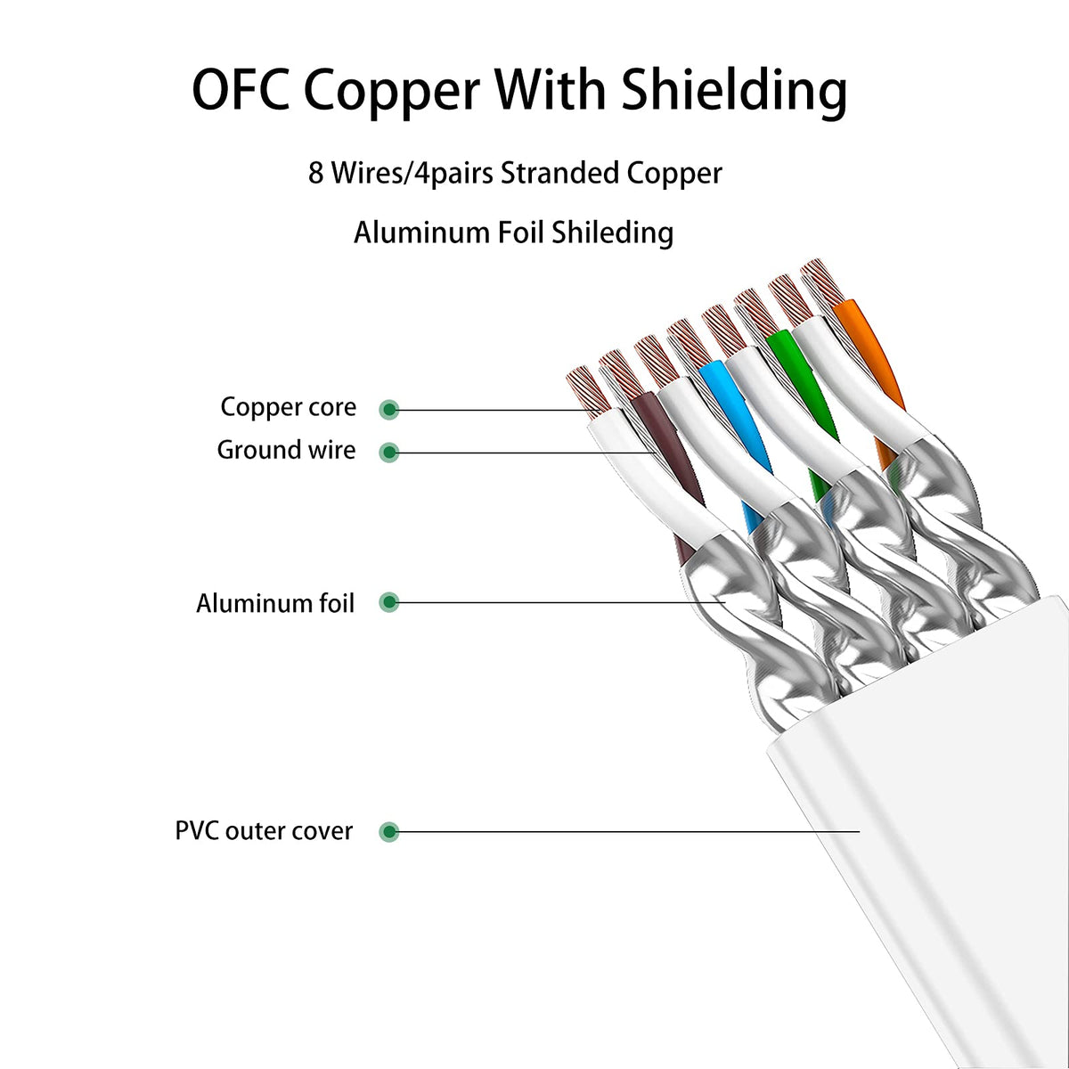 Deface Cat 8 Ethernet Cable 25 Ft Cat8 Internet Cable Flat Gigabit High Speed Shielded Rj45 Lan Cable For Ps4, Xbox, Router, Modem, Gaming,White
